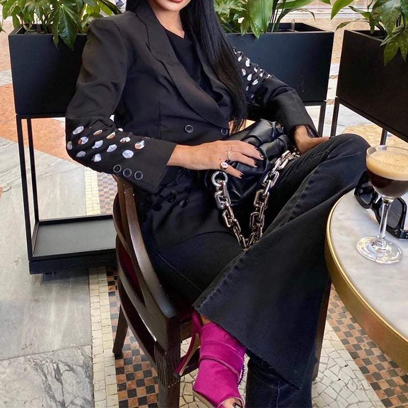 Autumn Hollow Out Cutout Blazer Women Jacket Small Blazer
