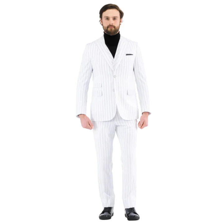 BELLAGIO WHITE BLACK MENS 2 BUTTON SLIM PEAK LAPEL SUIT WITH PICK STITCHING TICKET POCKET DOUBLE BREASTED VEST WITH SHAWL LAPEL