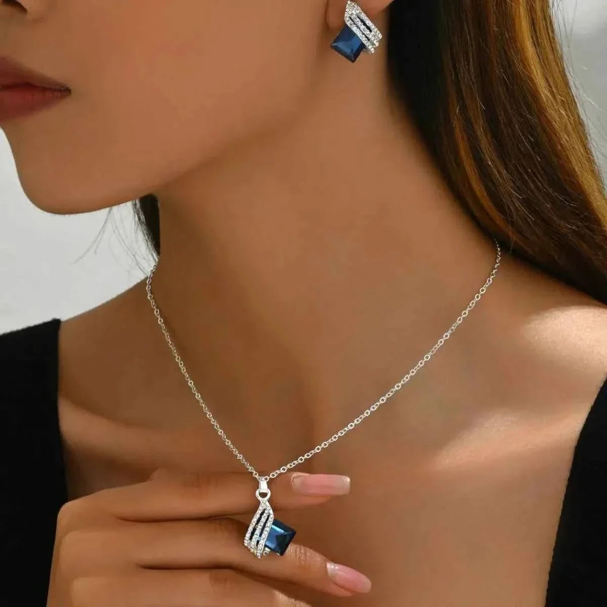 This jewelry set makes a thoughtful and stylish gift for friends, family, or yourself. The timeless design and versatile style make it easy to pair with any wardrobe, making it a wardrobe staple for any fashion-forward individual. Whether you're treating yourself to a new accessory or surprising a loved one with a special present, these stainless steel crystal earrings and necklace are sure to be a hit.