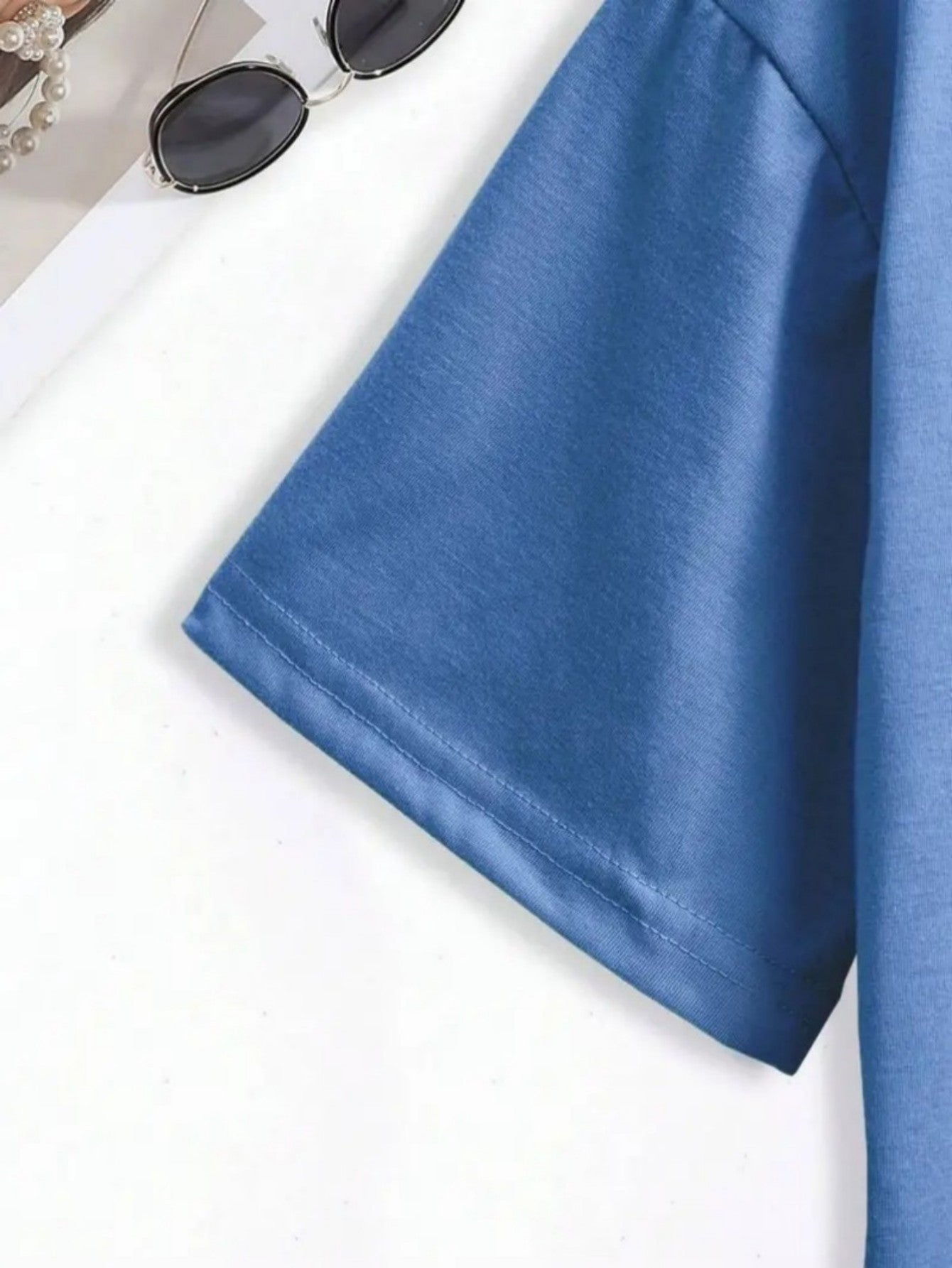 This light blue tee is low-key everything you need for your 'fit rotation, period. It’s giving soft, breathable, and just an all-around vibe that's perfect for literally any occasion. Think of it as your go-to, your ride-or-die, your closet’s MVP. Whether you’re hitting up brunch with your besties, need something chill for class, or even wanna low-key elevate your look for a semi-formal thing, this top is the move. It’s got that effortless cool that’s super easy to style, making those "I have nothing to wear" moments a thing of the past. Seriously, this is the everyday casual top that’s about to become your most-worn piece.