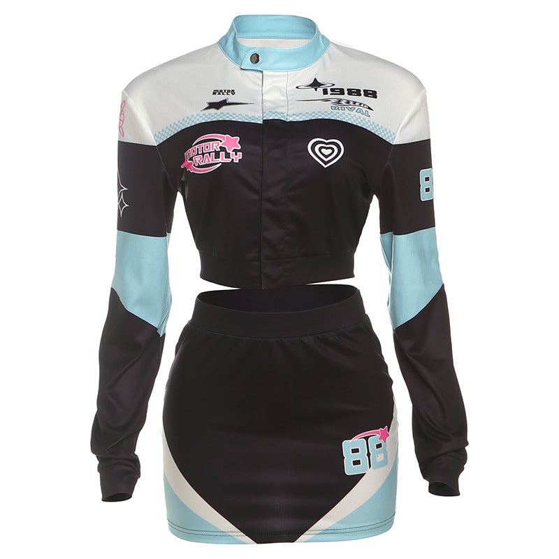 Ropa de otoño para mujer, top corto sexy de calle, falda con bolso de cadera, atuendo para mujer