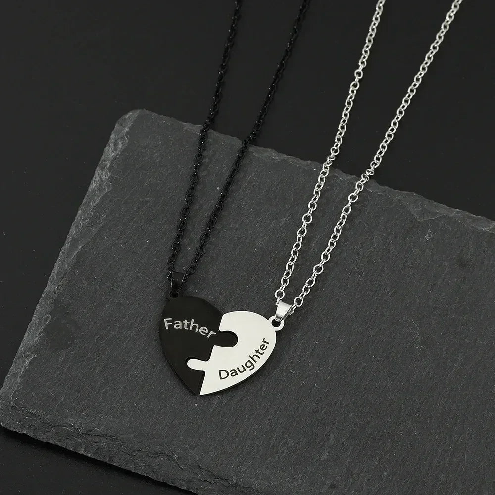 Collar con colgante de rompecabezas de corazón de amor para padre, madre, hijo e hija, joyería de acero inoxidable para mujer, regalo para el Día de la Madre