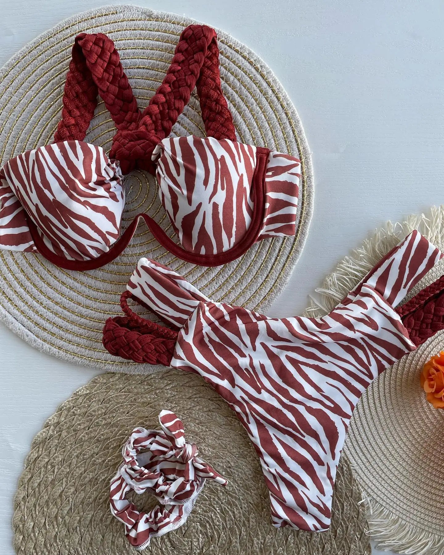 Presentamos el conjunto de bikini Sexikinis, con un seductor top halter y braguita de cintura baja, confeccionados en poliéster de alta calidad. El llamativo estampado de cebra le da un toque salvaje a este traje de baño playero. Con aros y relleno para un ajuste cómodo, este conjunto es perfecto para la mujer moderna que ama lucir su figura. Elaborado con intrincadas técnicas de tejido, este bikini es imprescindible para el verano de 2024. Marca tendencia y llama la atención con los trajes de baño Sexikinis. ¡Pídelo ahora y libera la diosa que llevas dentro!