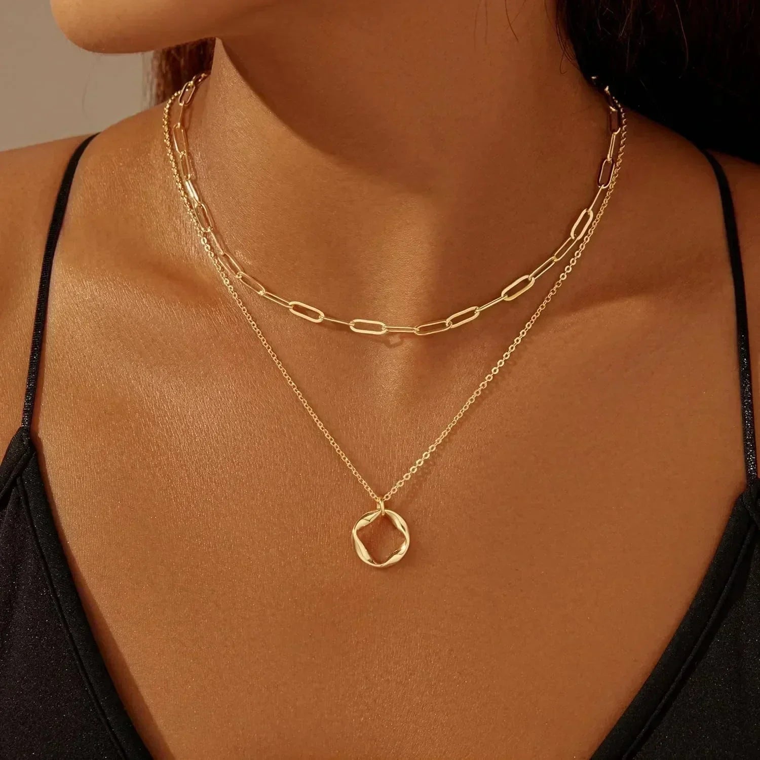 Collares de oro en capas para mujer, apilables, chapados en oro de 14 quilates, con cadena de clip circular, colgante y gargantilla para mujer.
