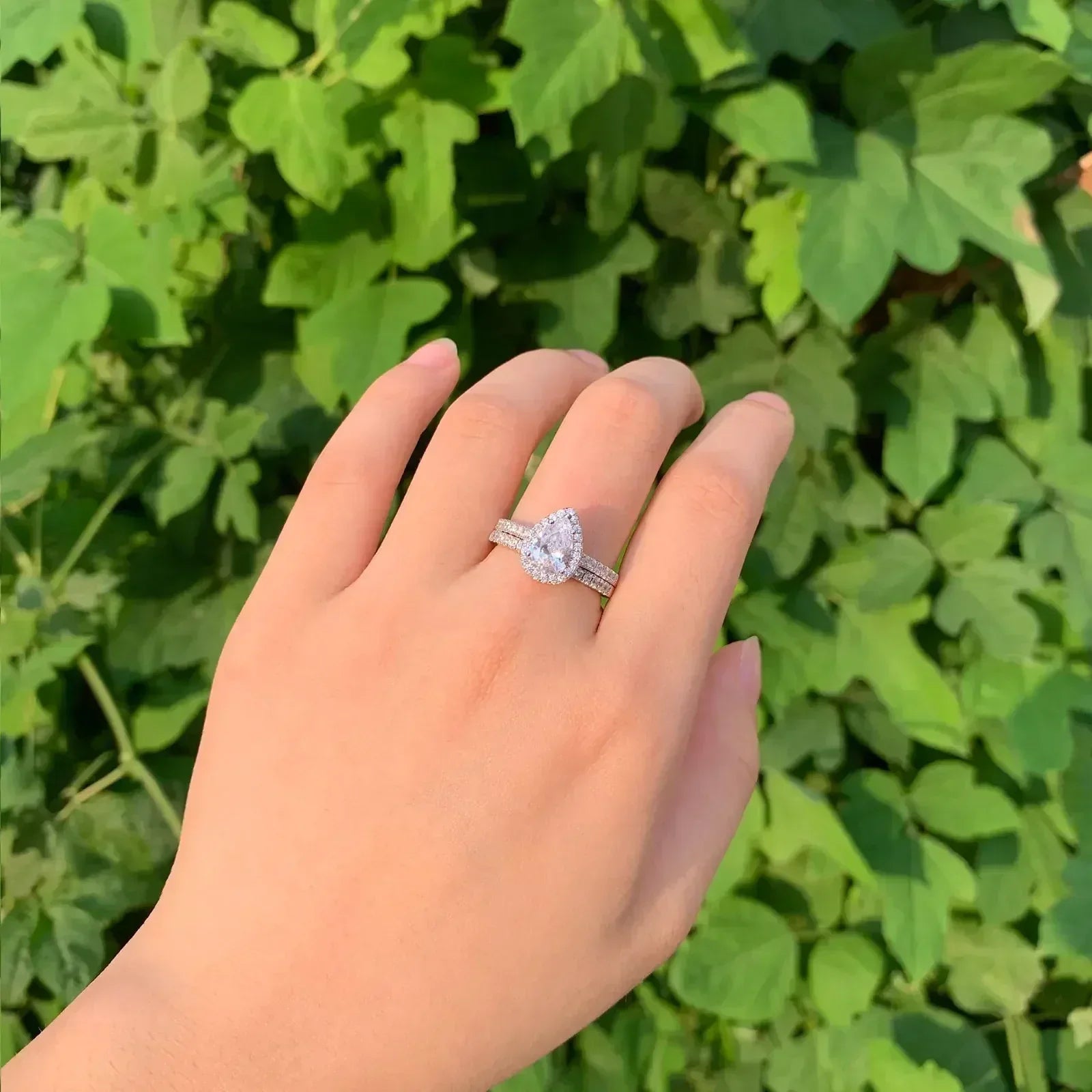 Anillo de compromiso Newshe de 2 piezas con forma de lágrima para mujer, de plata 925, con circonitas cúbicas de alta calidad.