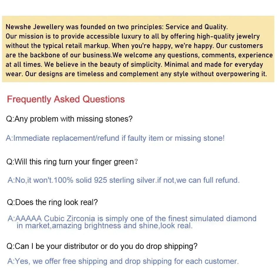 La claridad del color y el corte CZ coinciden perfectamente con los estándares de los diamantes naturales. NEWSHE JEWELLERY ofrece circonitas cúbicas seleccionadas a mano de alta calidad con un brillo y resplandor asombrosos.