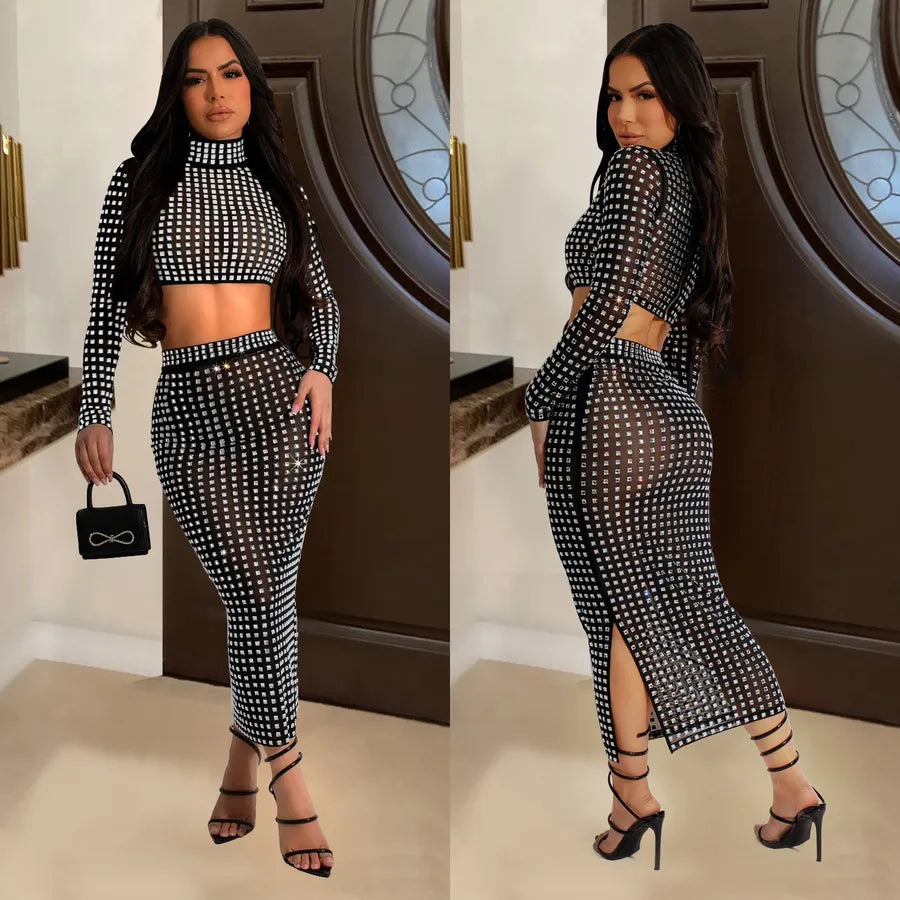 Women's Elegant Style Temperament Commuter Polka Dots Diamond Skirt Sets