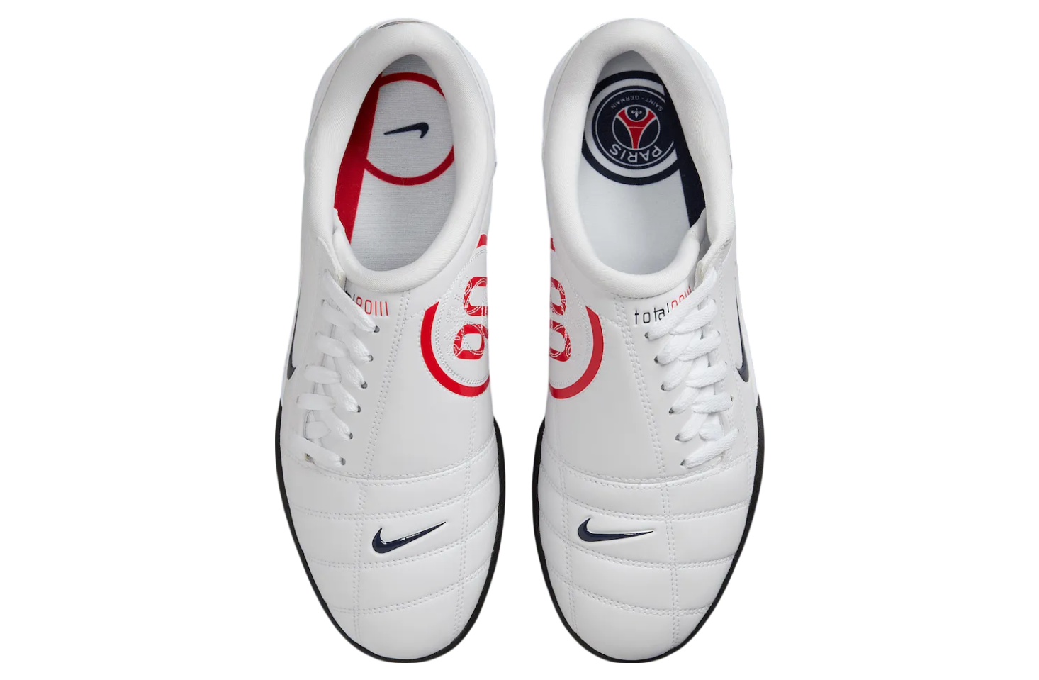 The Nike Total 90 Paris Saint-Germain (PSG) White / Midnight Navy is a striking football kit that pays homage to the rich legacy of both the Total 90 line and the prestigious French club, Paris Saint-Germain. This particular kit blends modern design elements with nostalgic touches that harken back to Nike's esteemed Total 90 series, known for its emphasis on performance, power, and precision.