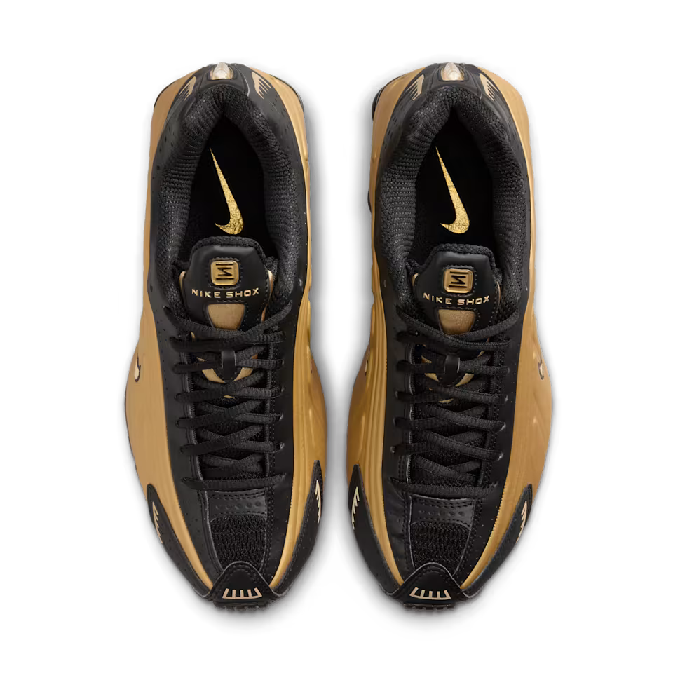 Step into standout style with the Nike Shox R4 “Metallic Gold.” This edition channels Y2K sneaker energy with striking metallic gold panels set against contrasting tones—offering a luxe, high-impact look without compromising on comfort.