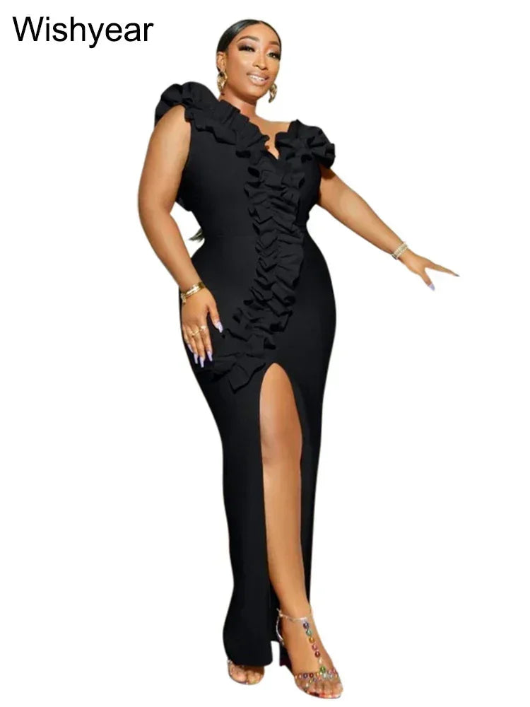 Bodycon sin mangas con hombros descubiertos y borde de orejas de madera con volantes