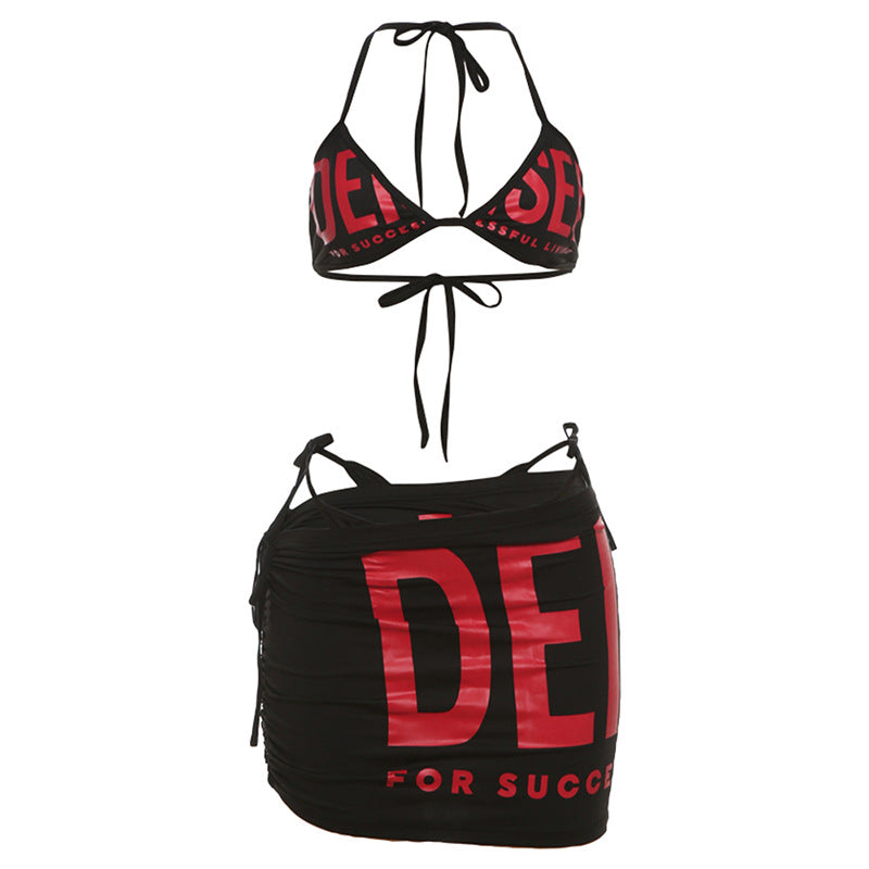 Summer Sexy Halter Lace up Top High Waist Hip Wrapped Skirt Set