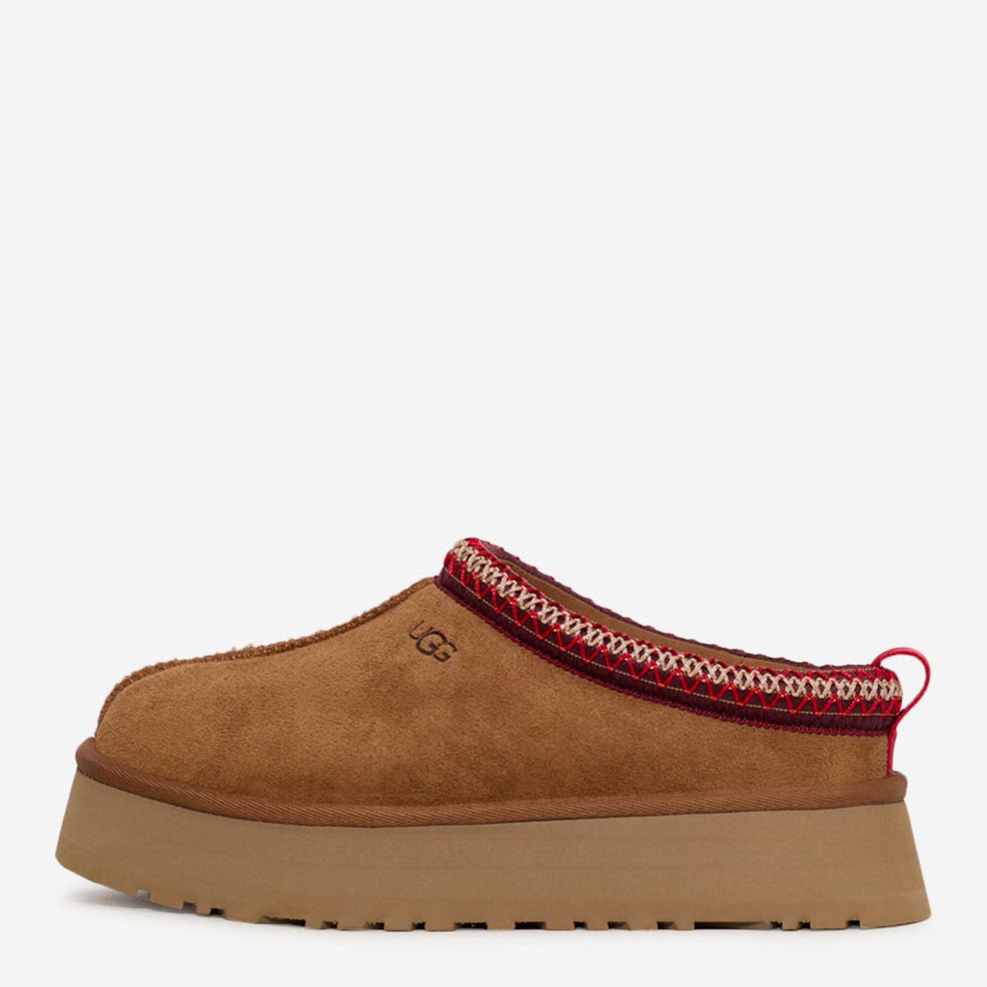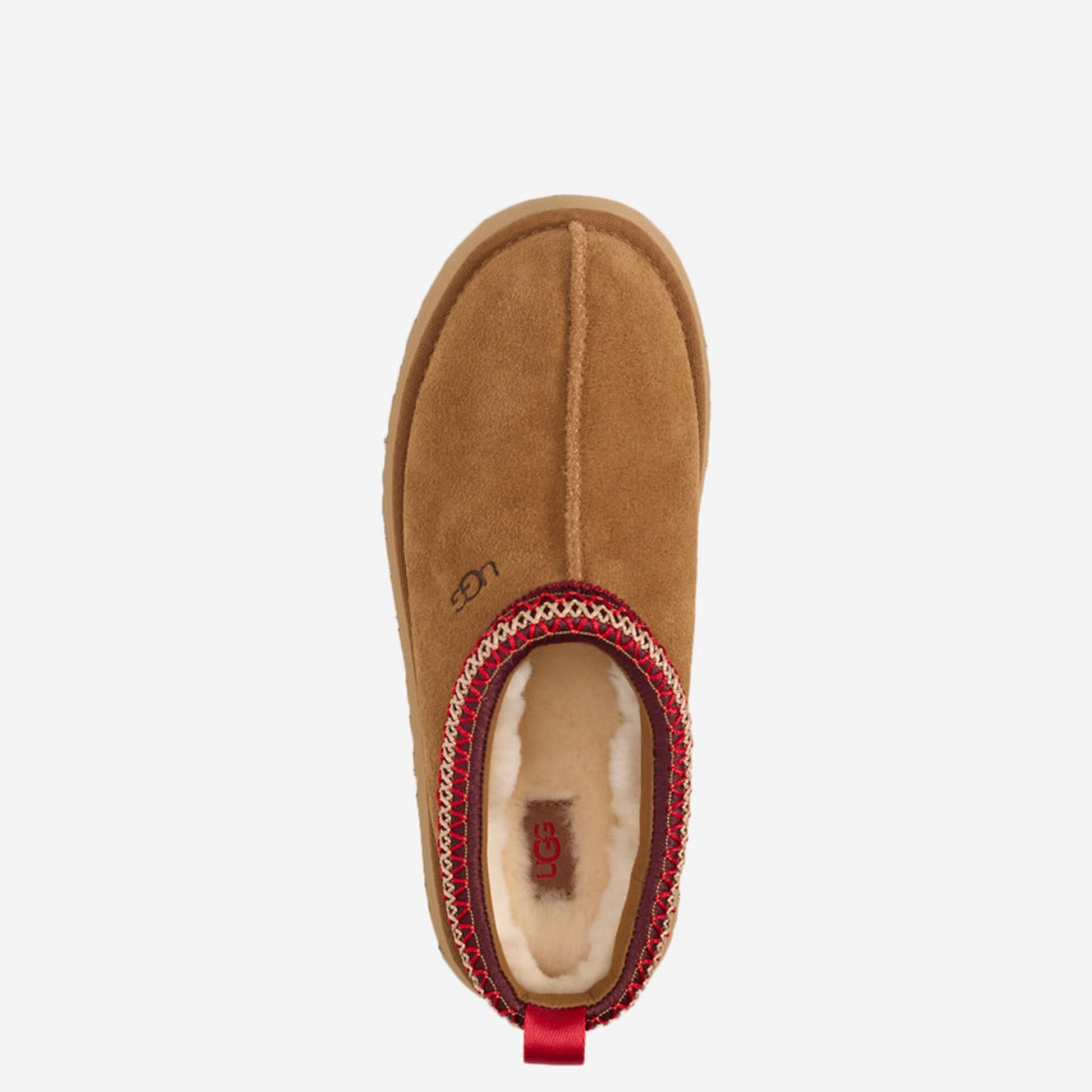 The UGG Tazz II in rich chestnut offers a maximalist interpretation of the timeless Tasman, adding a stylish 1.75" platform sole for a subtle lift and an on-trend look. This versatile slipper is designed for endless wearability, providing the signature UGG comfort and a durable indoor-outdoor outsole that effortlessly moves from lounging at home to quick errands.