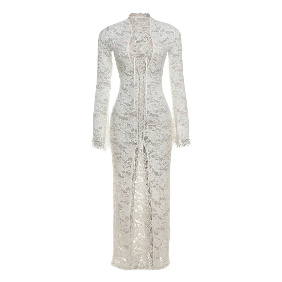 Vestido con volantes y bordado de gatitos extraños para mujer, sexy, escote en V profundo, aberturas transparentes