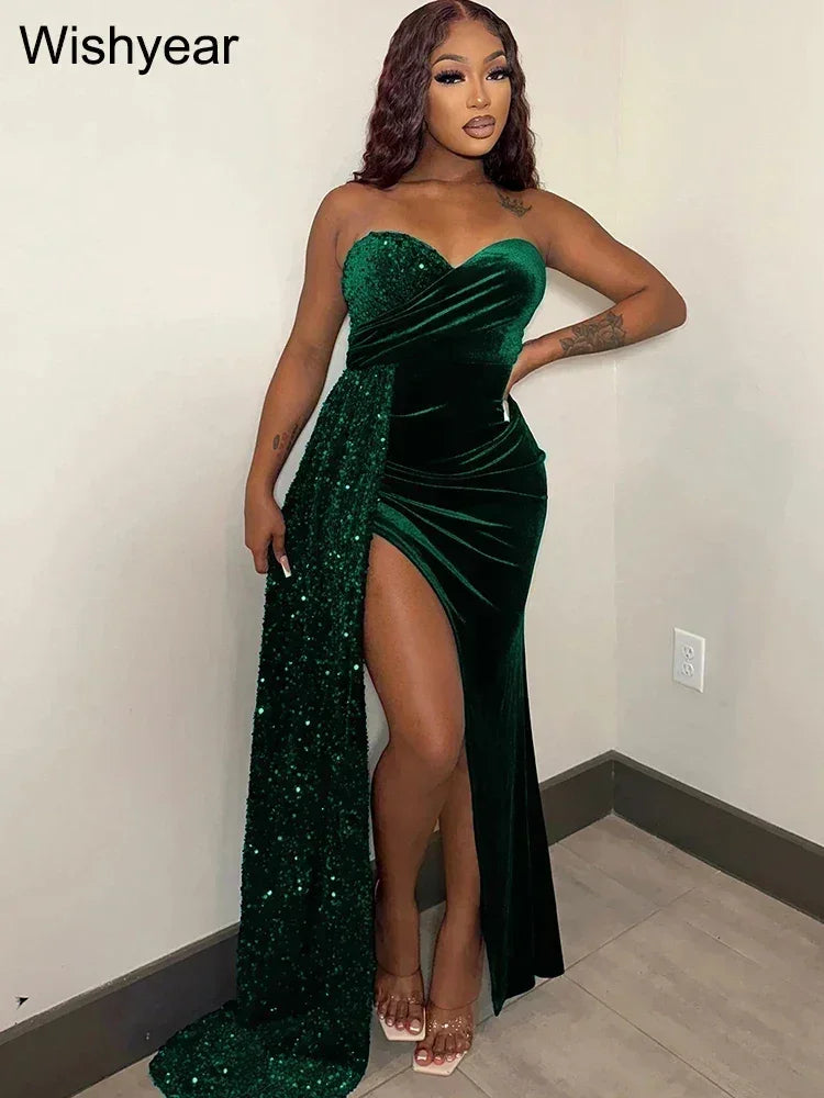 Vestido largo ajustado elegante y brillante de Wishyear