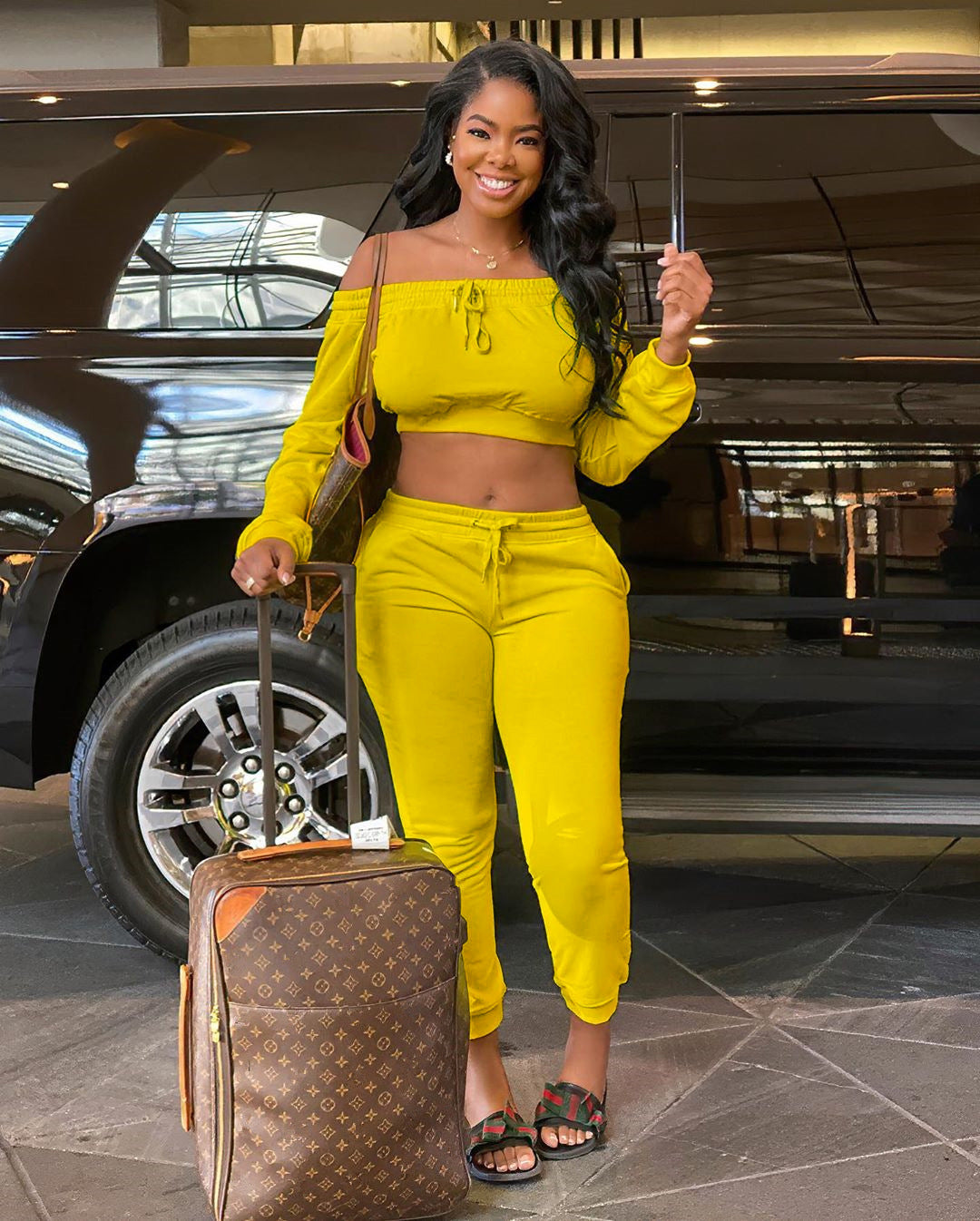 Women Clothing Long Sleeved Sports Suit Solid Color Elastic Waist Running Suit Autumn Winter