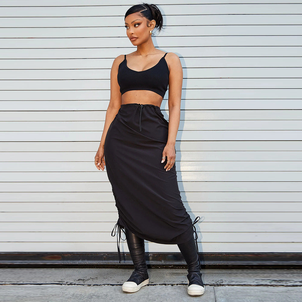 Falda de exterior con cordón y cintura elástica con bolsillo personalizado para mujer