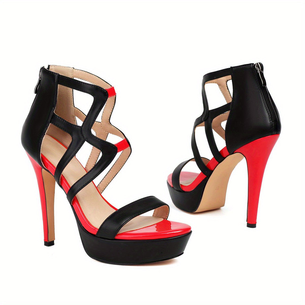 Okay, besties, listen up! These platform high-heeled sandals are everything. Seriously, you need these in your life ASAP. We're talking next-level vibes with a bold color-blocked design that screams confidence and style. The black and red combo? Total fire. Whether you're hitting up a concert with your crew, slaying a first date, or just want to add some extra oomph to your everyday fit, these babies are the answer. The crisscross ankle straps aren't just cute; they also give you that secure, locked-in feeling so you can strut your stuff without a worry.