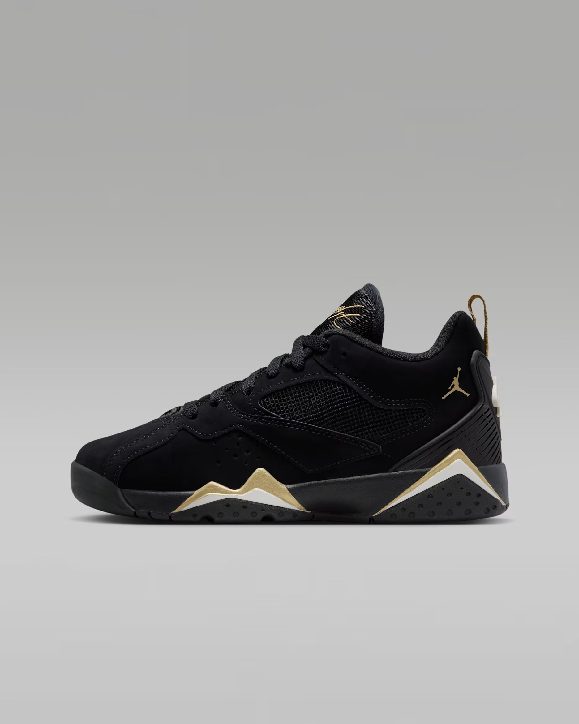 A striking youth-sized edition of the MVP 92 silhouette, dressed in a bold black and metallic gold palette with heritage styling—perfect for young sneaker fans who appreciate premium design and Jordan legacy.
