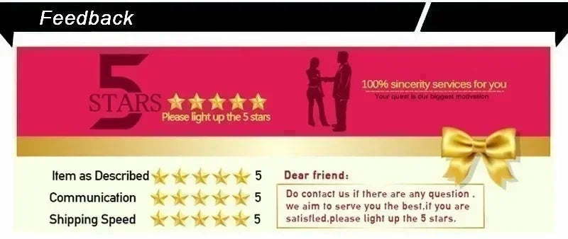 take a minute to leave us positive Comments with an overall Detailed Selling Rating (DSR) of 5.