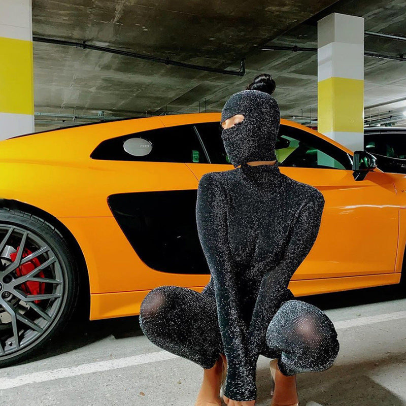 Spring Women Long Sleeve High Neck Sexy Backless Hip Raise Skinny Sports Jumpsuit