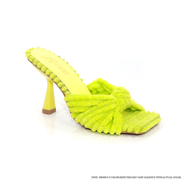 Step into a world of style and comfort with our Tonka-1 Terry Cloth Mules. Made for the fashion-forward individual, these mules are designed with a soft terry cloth upper and a comfortable, flared heel for added support. The bright neon colors make a bold statement and add a pop of excitement to any outfit. With a man-made sole and true-to-size fit, these mules are as practical as they are stylish.
