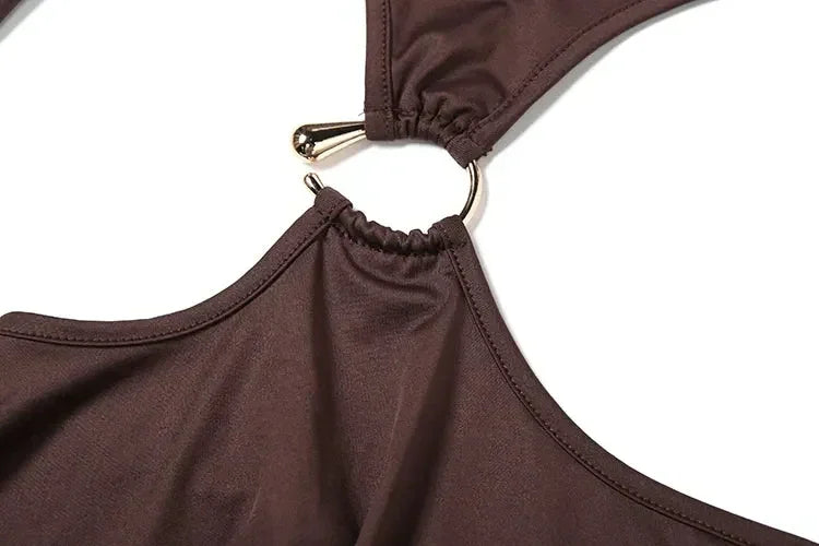 Whatiwear Hollow Waistless Dress Women Skew Collar Off Shoulder