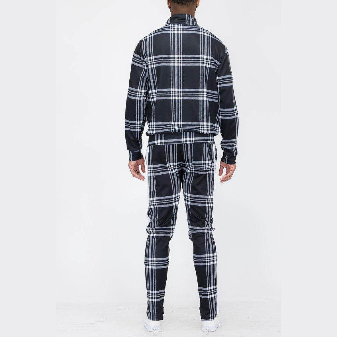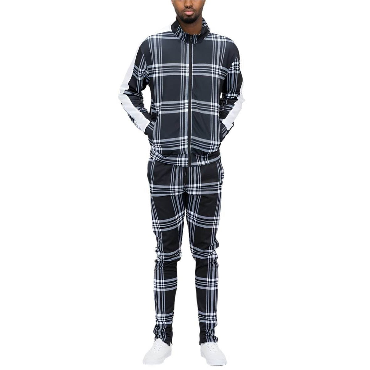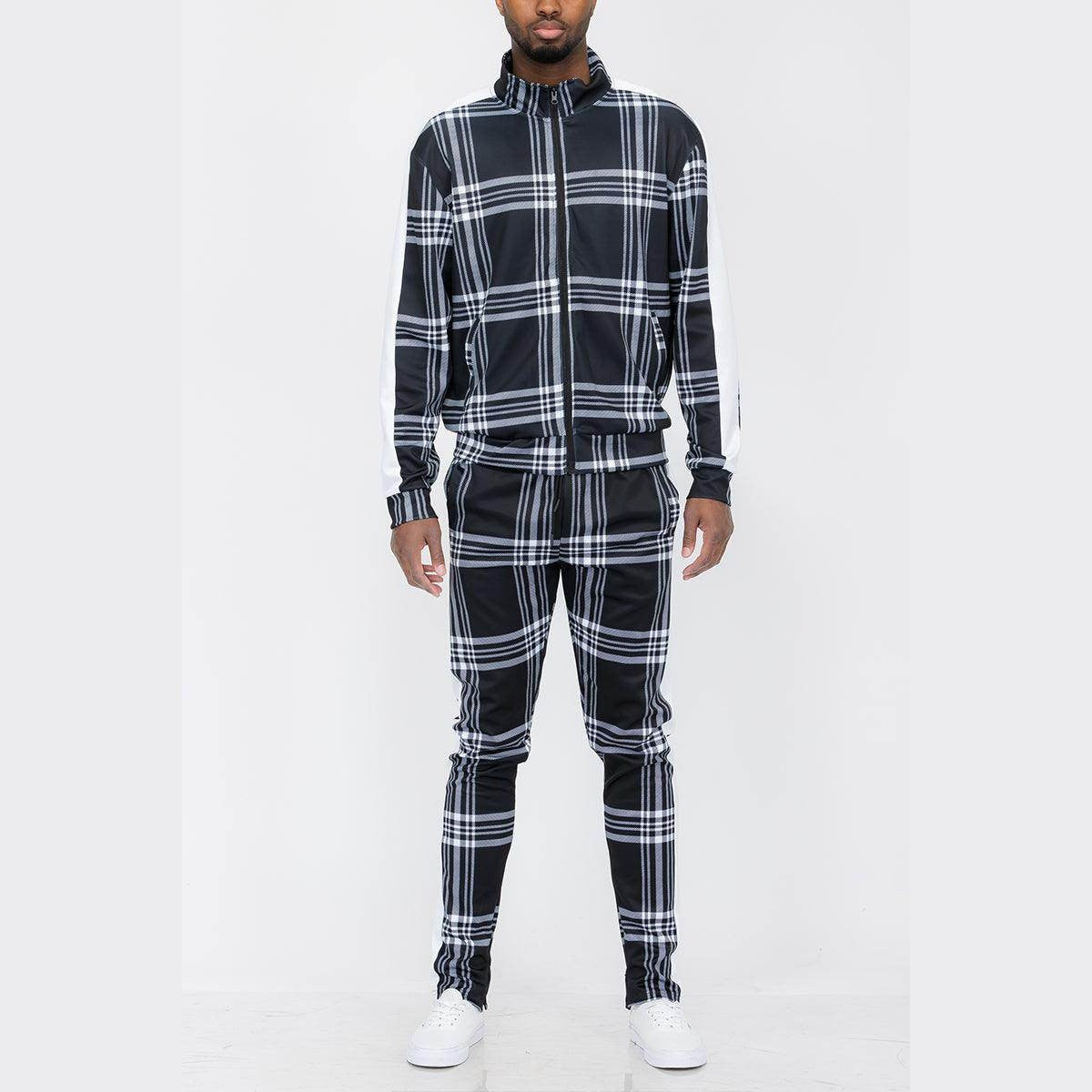 黑色格紋運動外套和褲子套裝