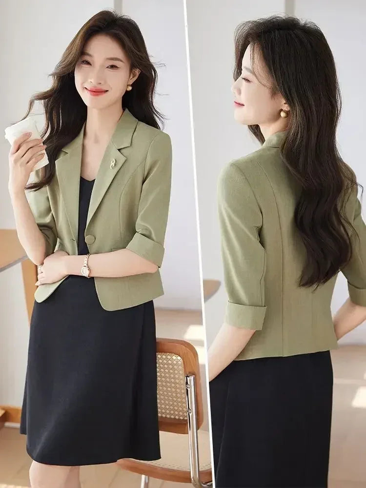 黑色女士修身西裝外套 職業女性短版西裝外套