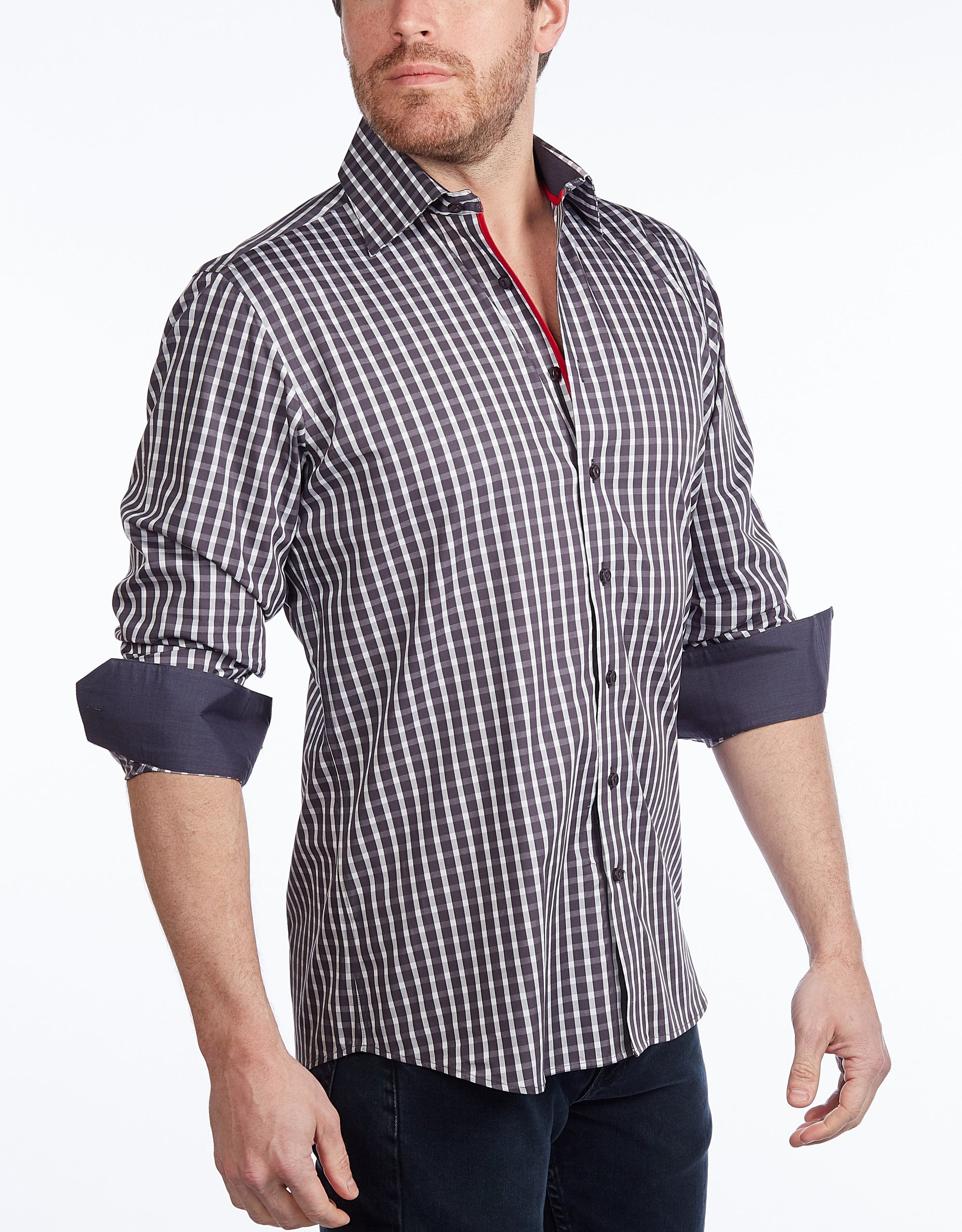 Button-Up Shirt I Charcoal - Contemporary Fit - Contrast trimming