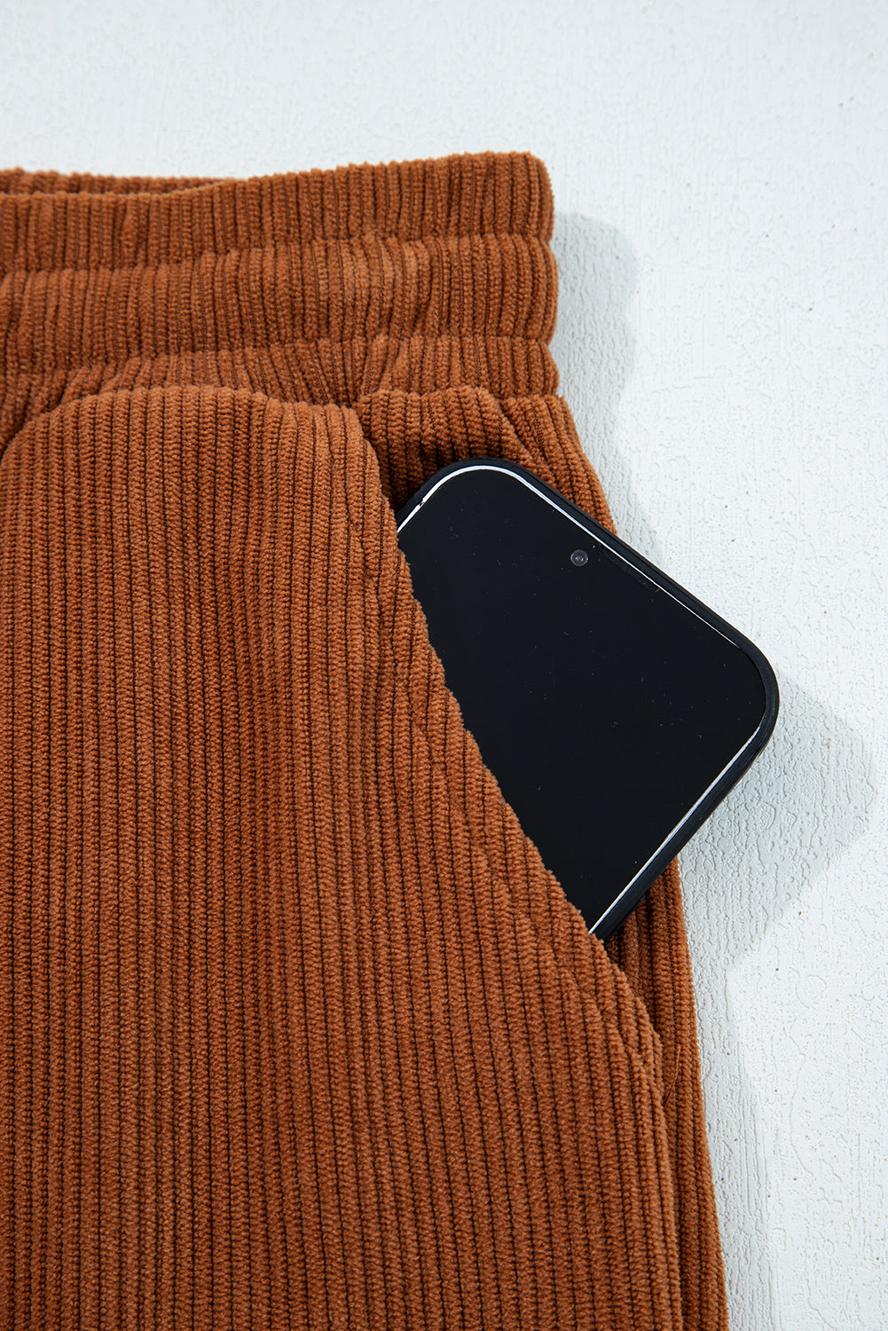 Chestnut Drawstring Elastic Waist Casual Corduroy Pants
