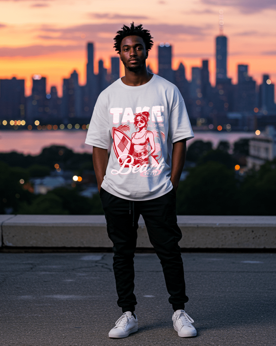 The G West Take Me To The Beach Oversized Men's T-Shirt combines a relaxed, roomy fit with soft, breathable fabric for all-day comfort. Featuring a casual beach-inspired design, this t-shirt is perfect for laid-back settings and effortless style. Its durable construction ensures lasting wear, making it an ideal choice for everyday summer wear.