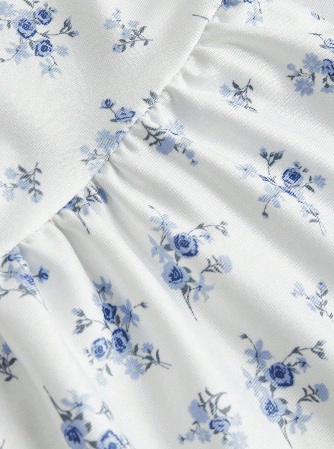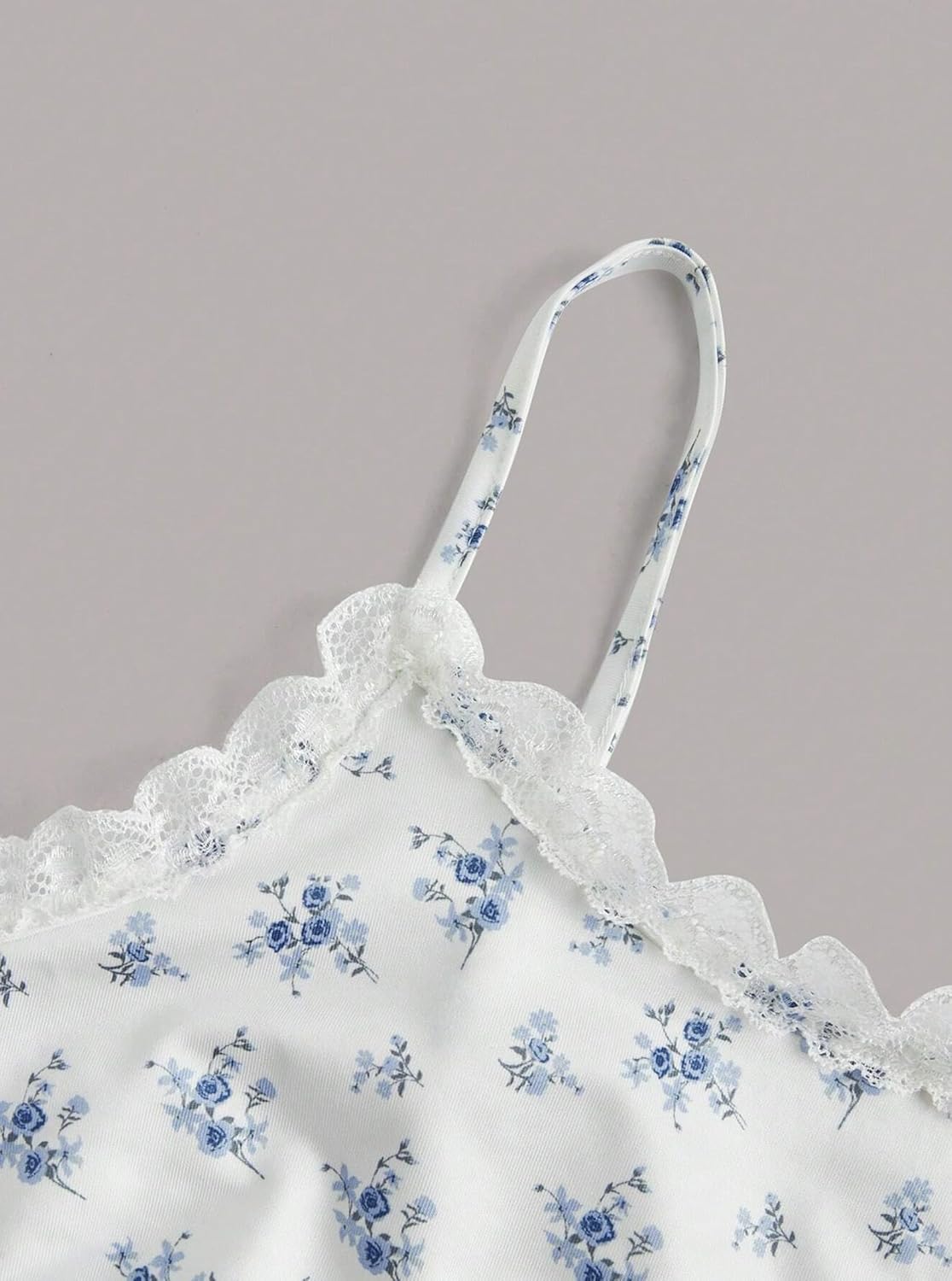 - 產品特色:女士性感睡衣套裝,藍色碎花印花,無袖,細肩帶,蕾絲吊帶上衣搭配褶皺短褲,修身剪裁,性感內衣,女士夏季休閒套裝