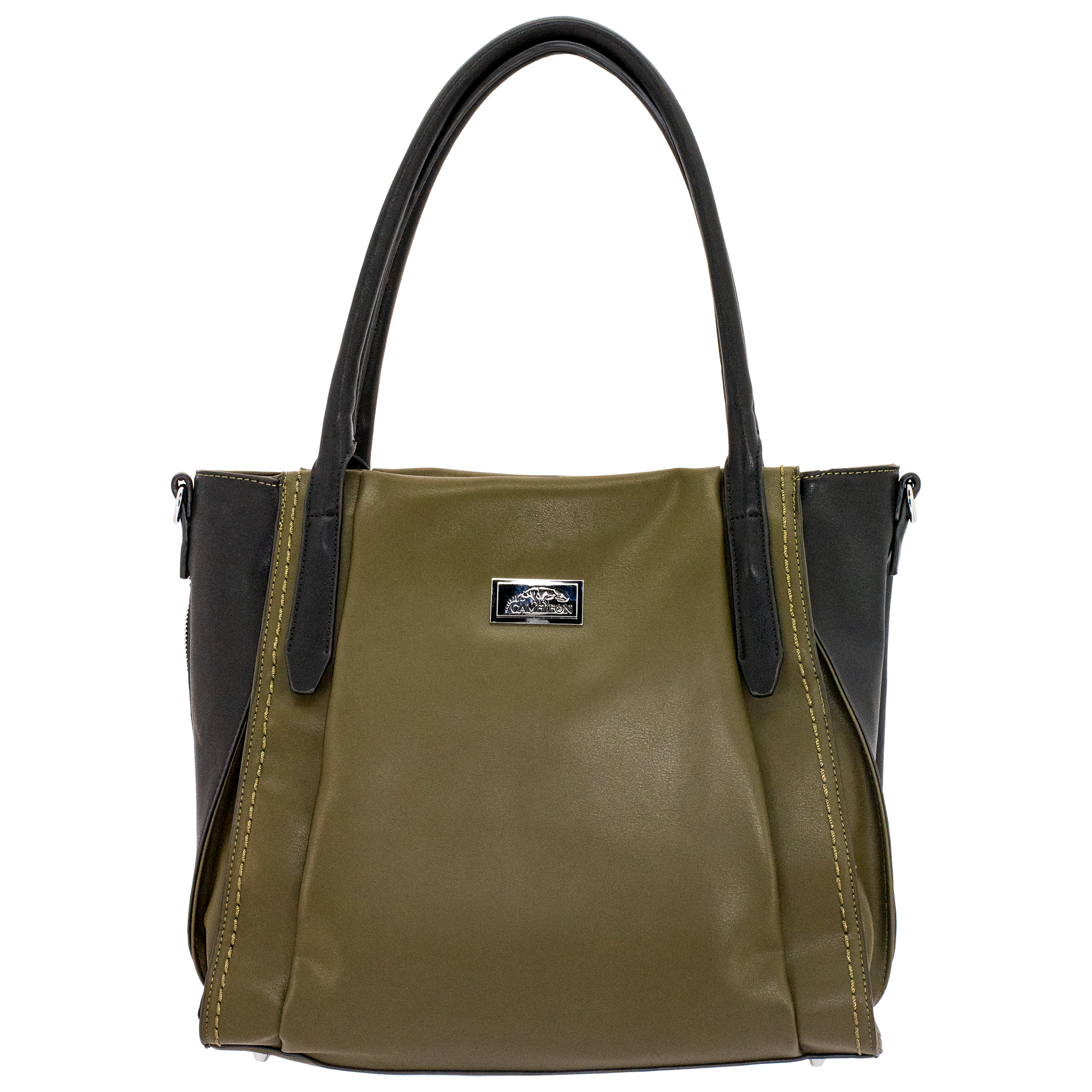 One Large Zipper Compartment with 2 open phone pockets on one size and 1 zipper pocket on the other. Reinforced Bottom with 4 metal feet. Removable and Adjustable cut resistant Crossbody strap.