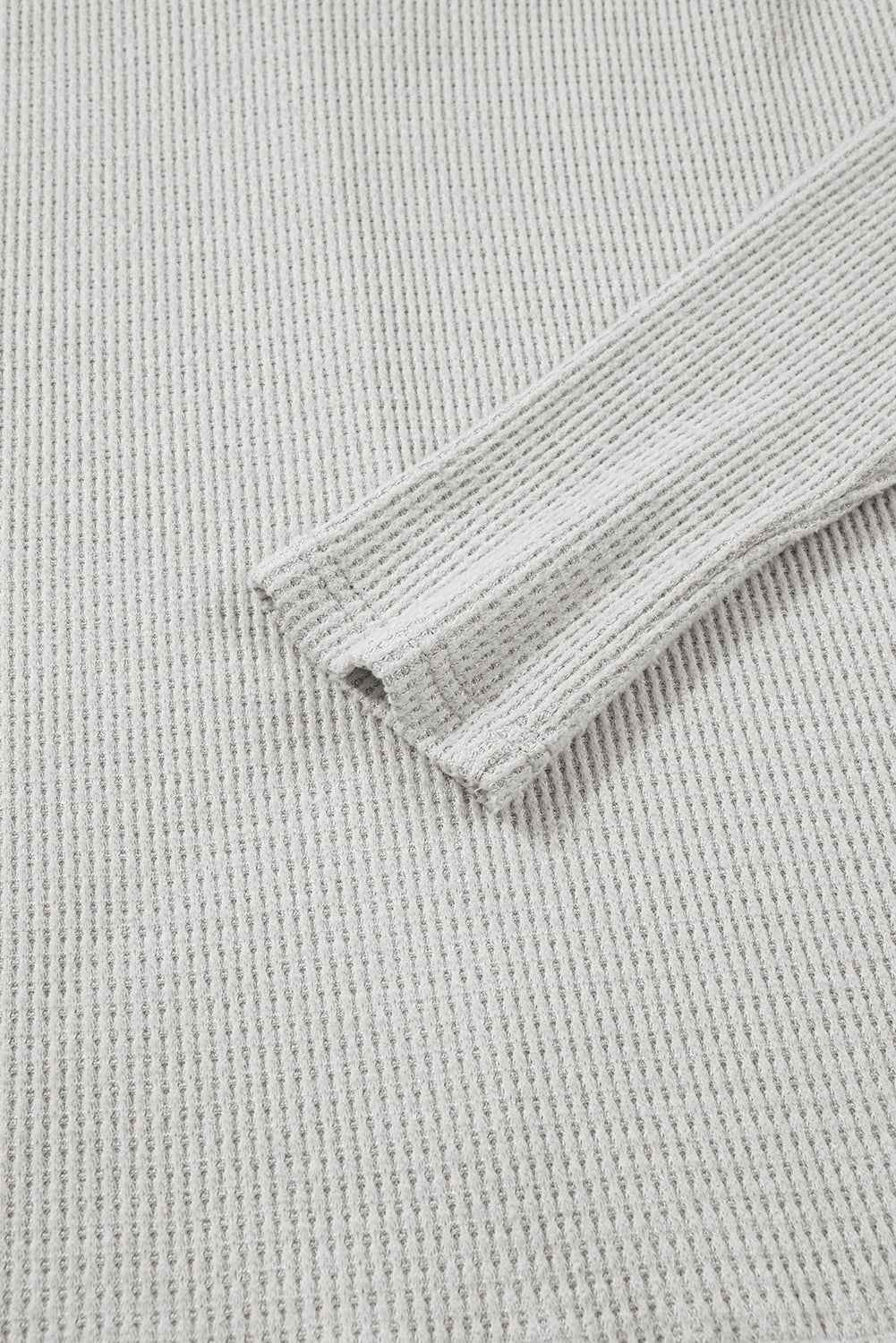 Light Grey Textured Knit Drawstring Cowl Neck Oversize Top with Side Slits