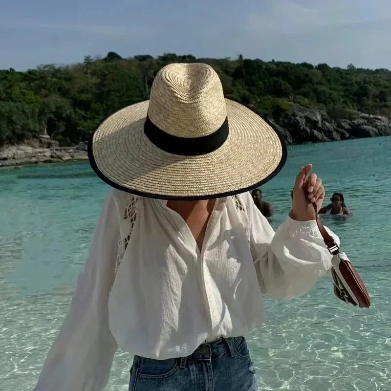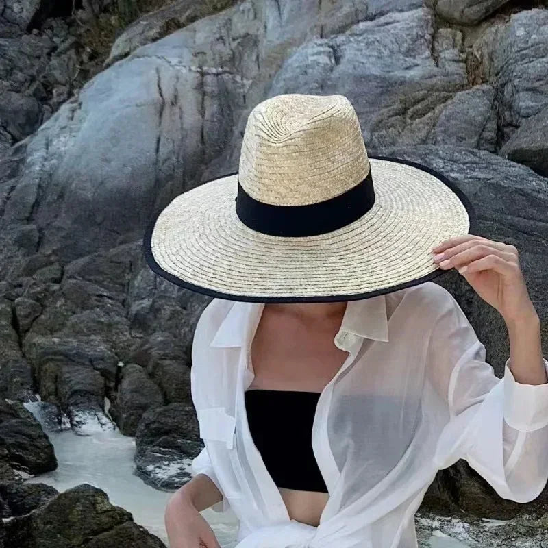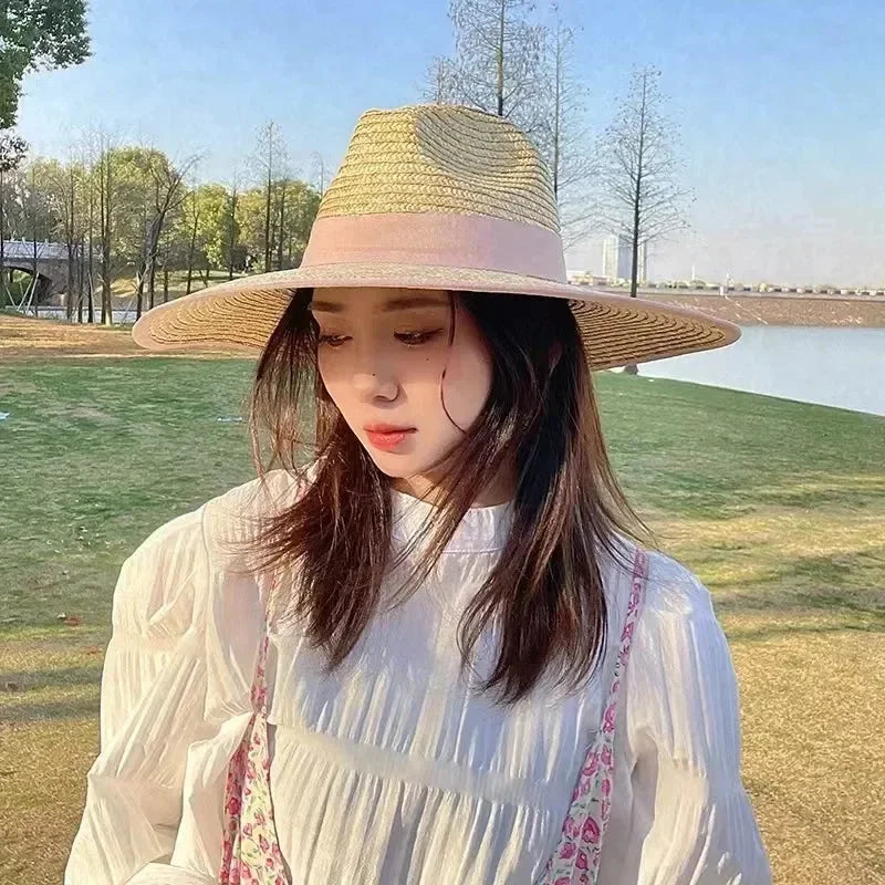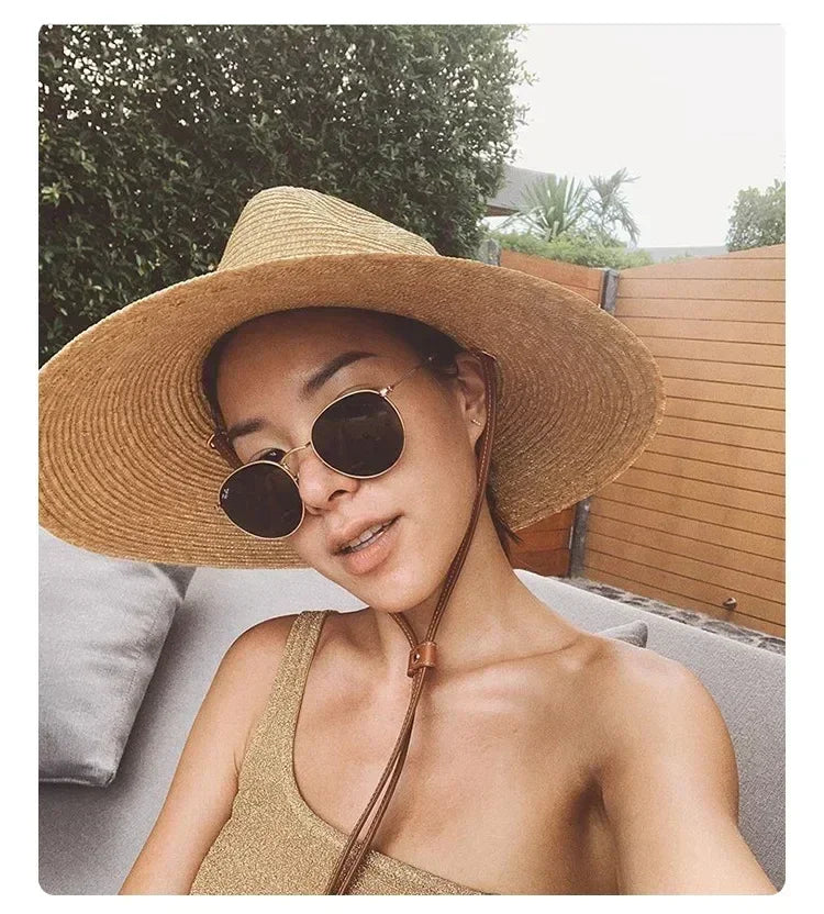 2024年新女士時尚度假沙灘防紫外線寬簷草編遮陽帽,夏季旅行巴拿馬帽,戶外批發