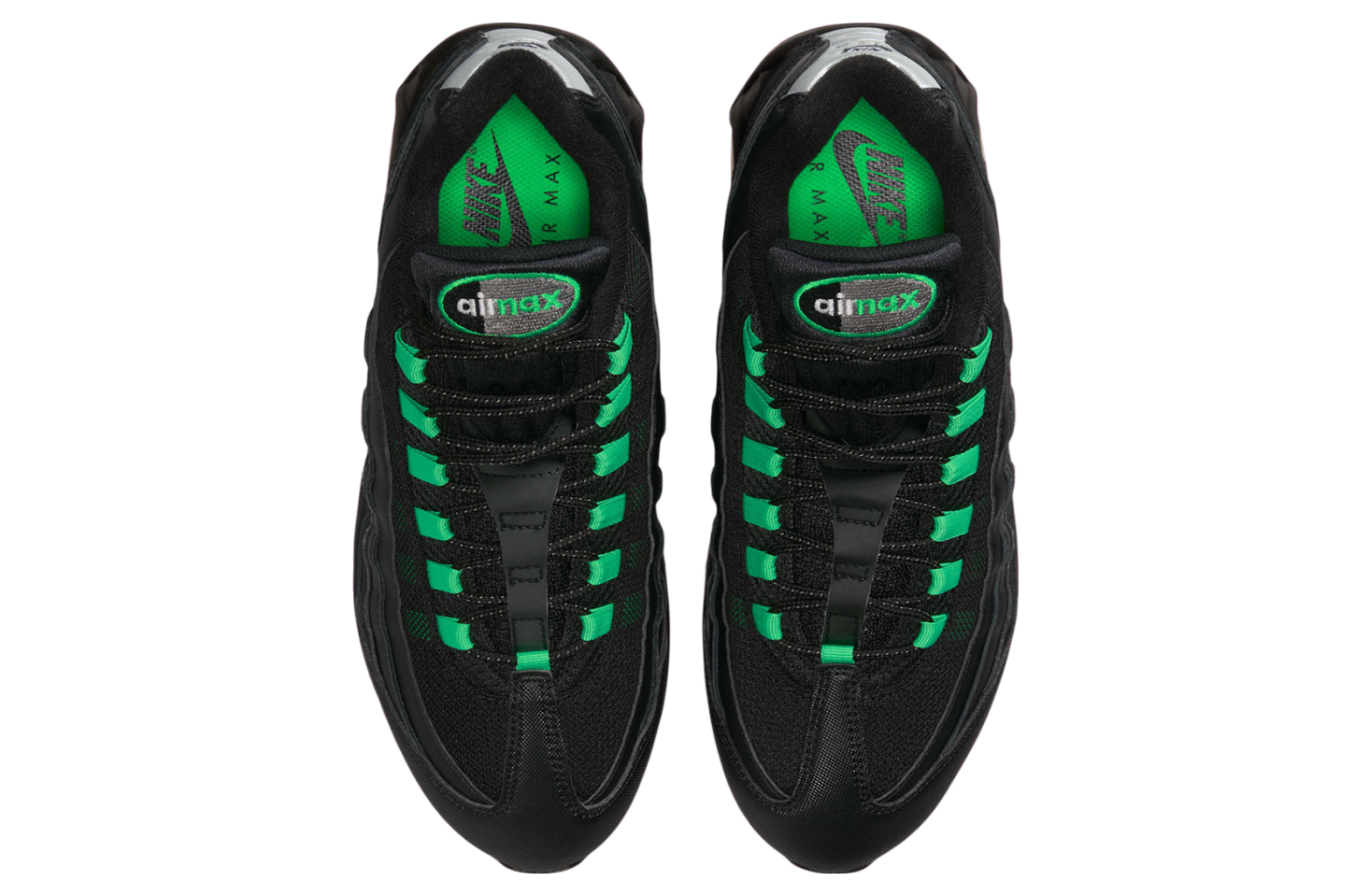The Nike Air Max 95 OG GS Black / Green Shock is a stunning rendition of the classic Air Max 95 silhouette, designed specifically for a younger generation. This sneaker pays homage to the original design while infusing it with a contemporary twist that captures the essence of modern streetwear fashion. The shoe features a striking color scheme, with a dominant black upper that provides a sleek and versatile foundation.