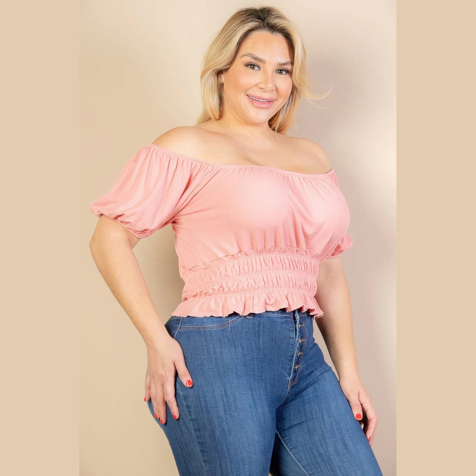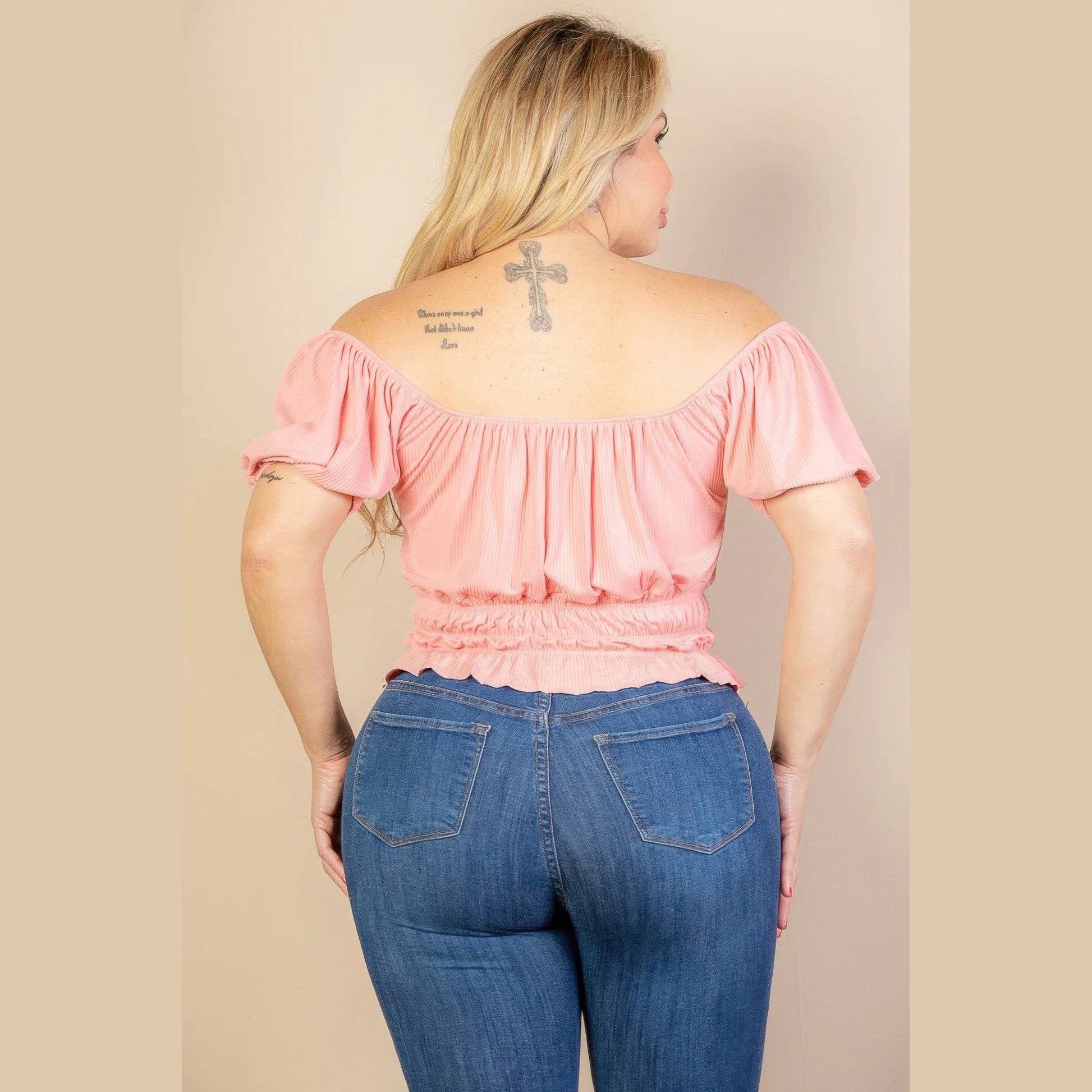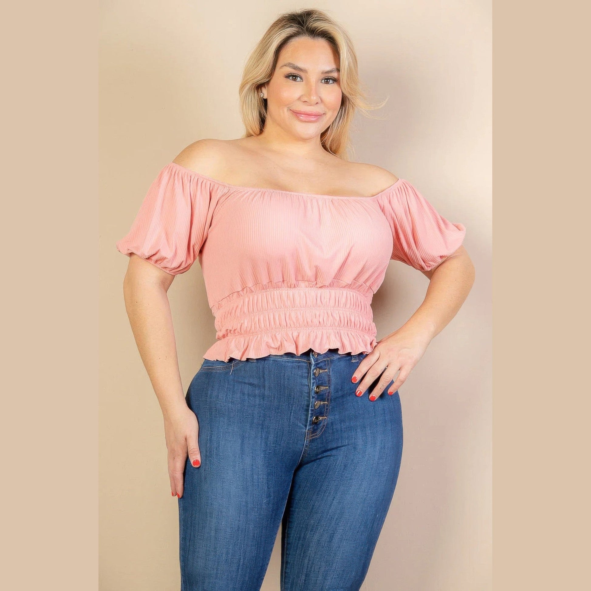 立即將這款大尺碼休閒褶皺泡泡袖羅紋針織純色上衣(腮紅色)加入購物車,為您的衣櫥增添時尚、舒適、百搭的單品!
