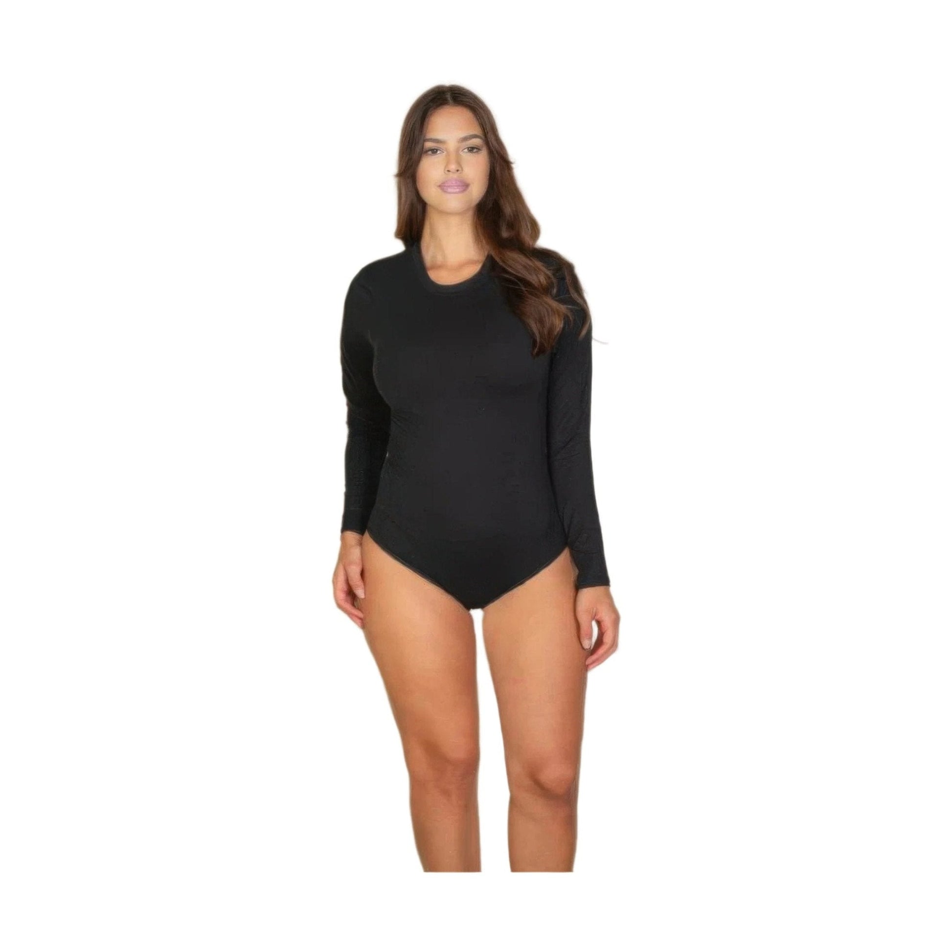 這款黑色加大尺寸純色長袖圓領連身衣,讓您輕鬆展現時尚風格,享受全天候舒適穿著體驗。採用柔軟輕盈的高彈性針織布料,這款連身衣貼合身形,彈性十足,帶來極致舒適的穿著感受。經典的圓領和長袖設計,打造永不過時的輪廓,使其成為衣櫥必備單品,輕鬆駕馭各種場合。無論是內搭外套、搭配高腰牛仔褲,還是單穿,這款百搭的黑色連身衣都能輕鬆提升您的整體造型。