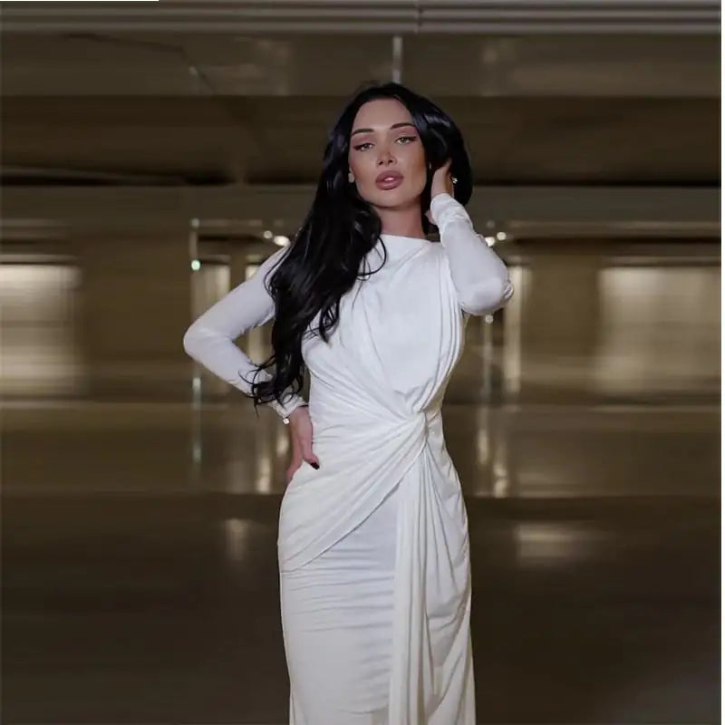 穿上我們這款驚豔的時尚圓領褶襉修身純色氣質連身裙,展現優雅氣質。這款精緻的洋裝採用優質聚酯纖維布料製成,兼具舒適性和時尚感。包臀裙擺設計凸顯您的身材曲線,完美貼合每一寸肌膚,無論是休閒出行還是正式場合,都是您的理想之選。
