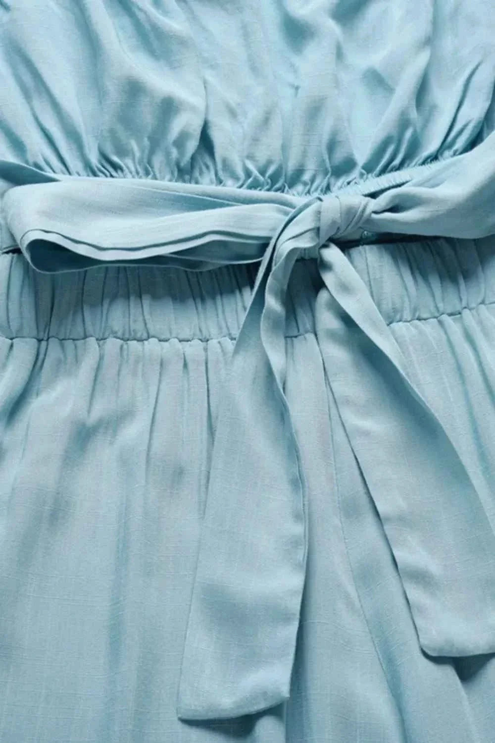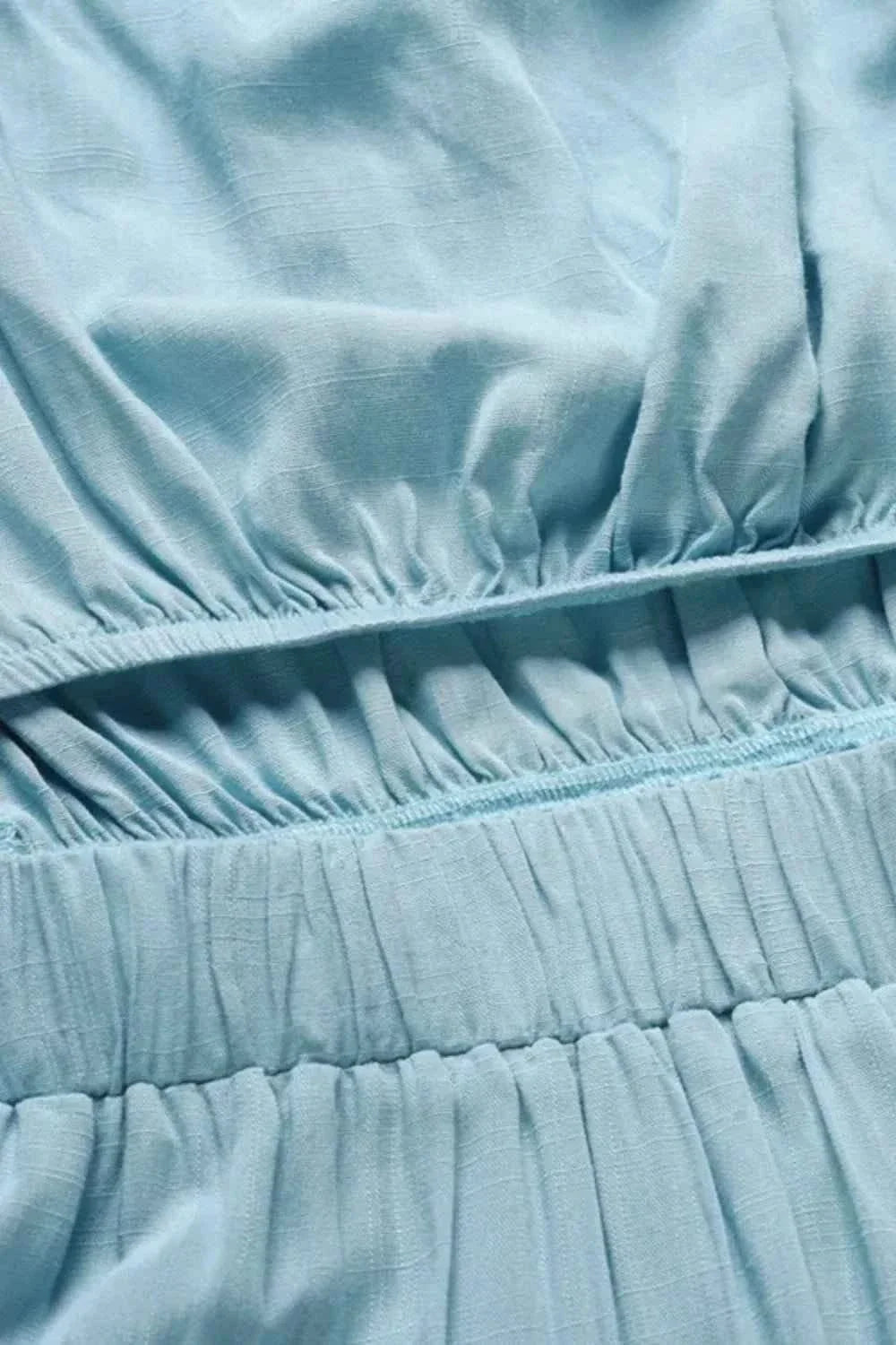 This Tied Cutout Tube Wide Leg Jumpsuit is a versatile piece that can be dressed up or down with ease. Pair it with heels and statement jewelry for a night out, or throw on a denim jacket and sneakers for a more casual look. With its on-trend design and comfortable fit, this jumpsuit is sure to become a staple in your wardrobe for seasons to come.
