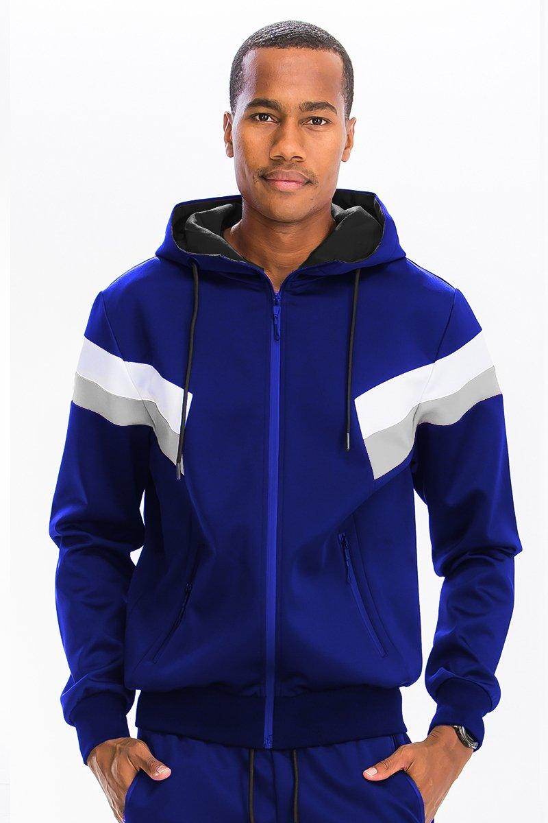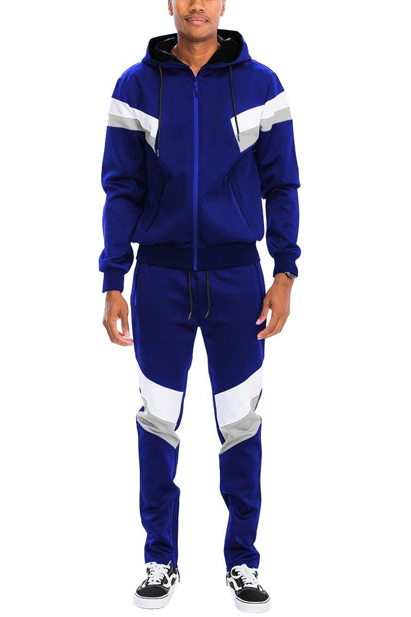 用我們這款亮眼的藍黑白三色運動套裝,為你的衣櫥增添新意。這款來自 VacationGrabs 的男士兩件式運動套裝,完美融合了時尚與舒適。無論任何場合,這款運動套裝都能以其動感的設計,提升你的休閒造型。
