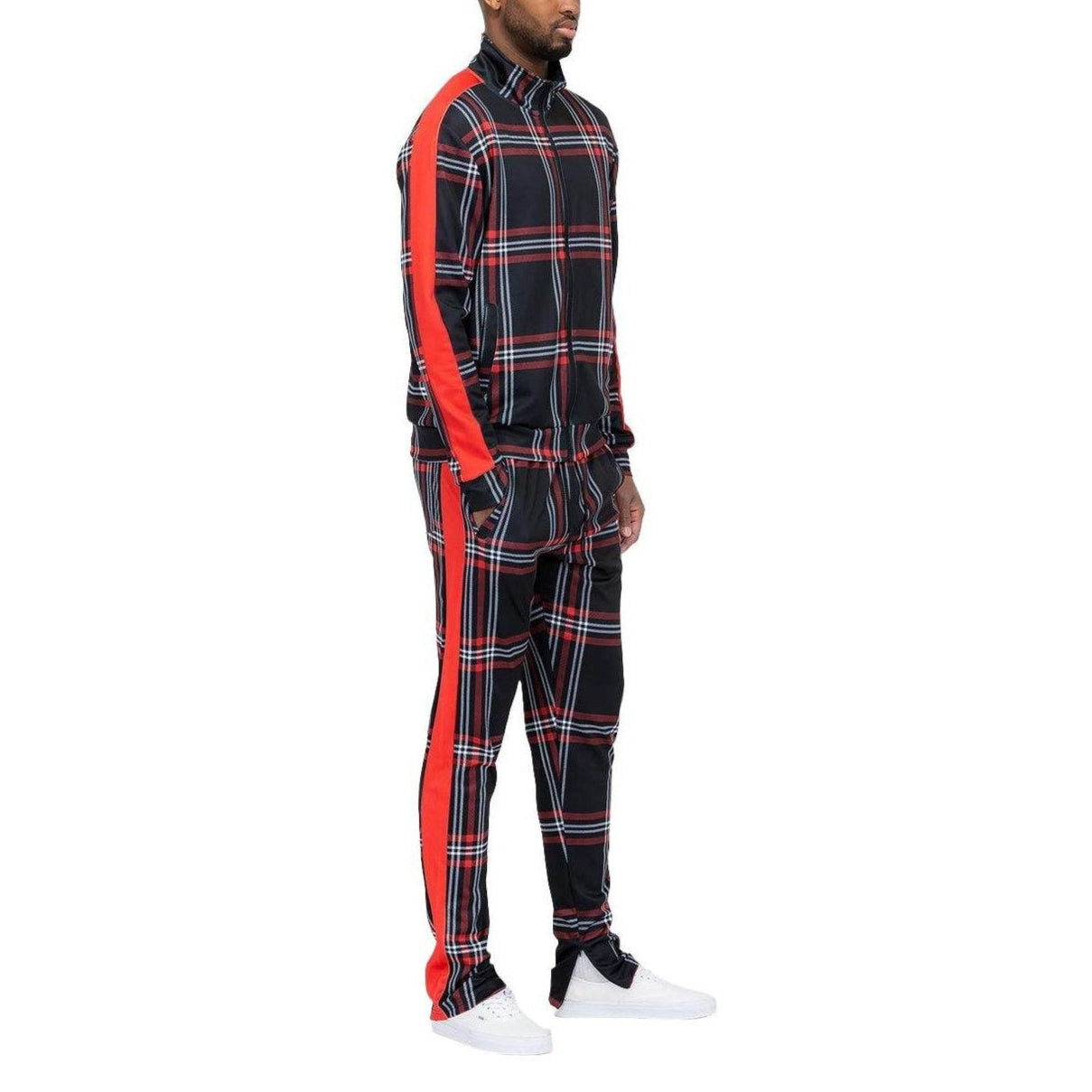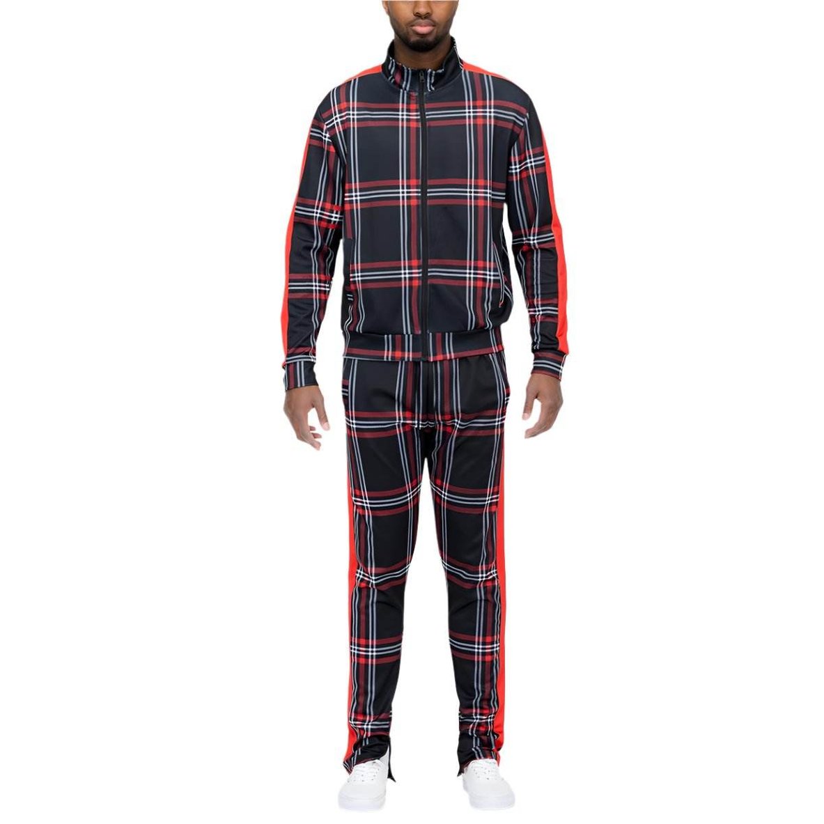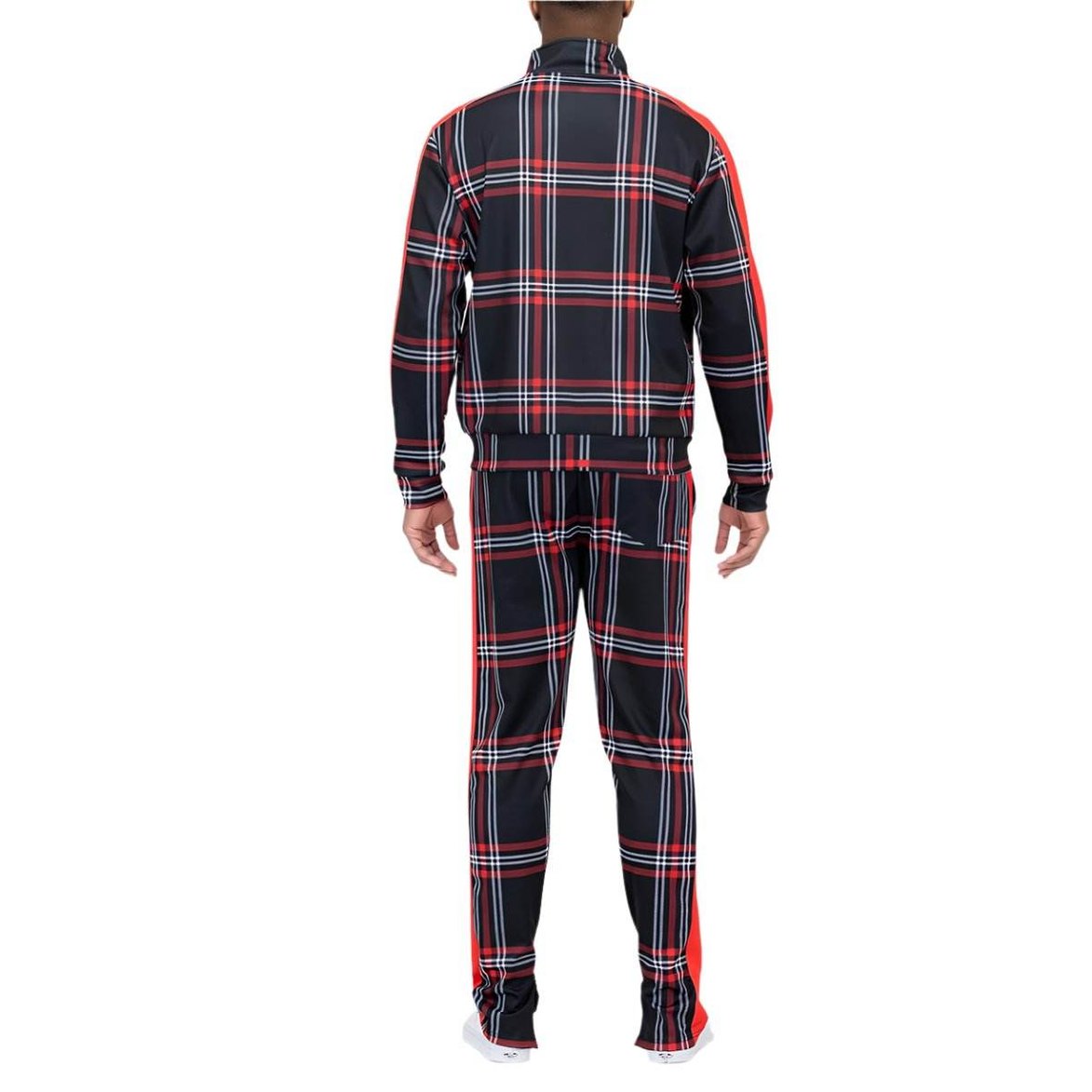 這款運動套裝設計百搭,採用醒目的黑紅格紋圖案,是休閒外出或旅行的理想之選。外套和褲子的組合打造出和諧統一的造型,兼具運動感和時尚感。