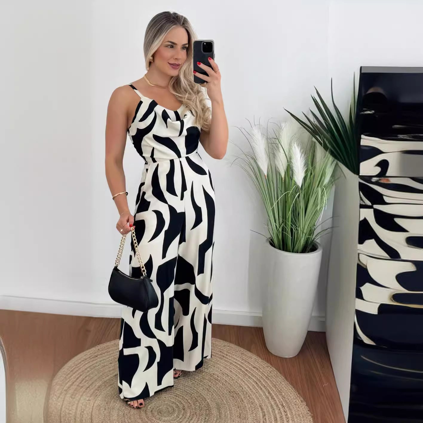 Women Clothing Office Sling One Piece Straight Leg Trousers