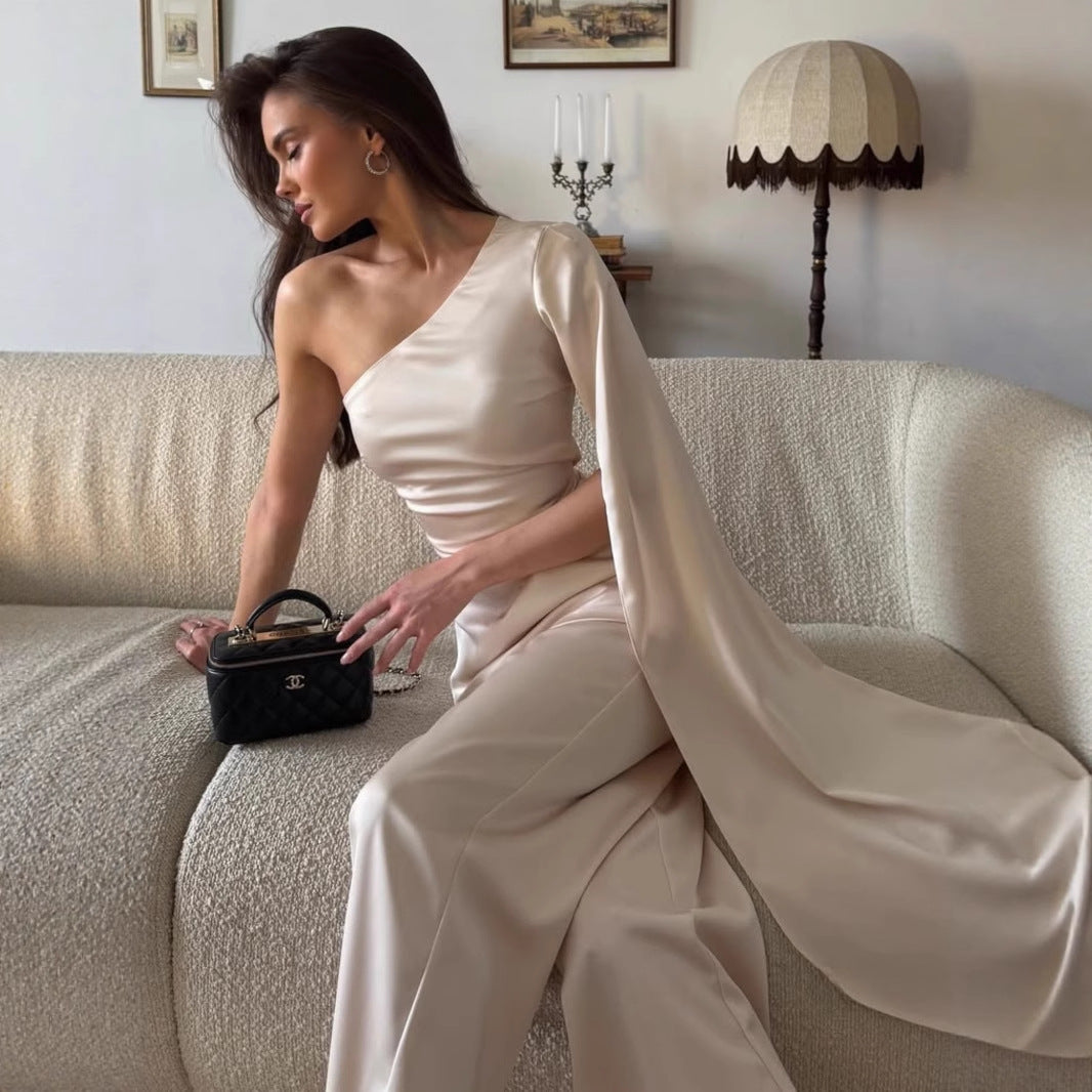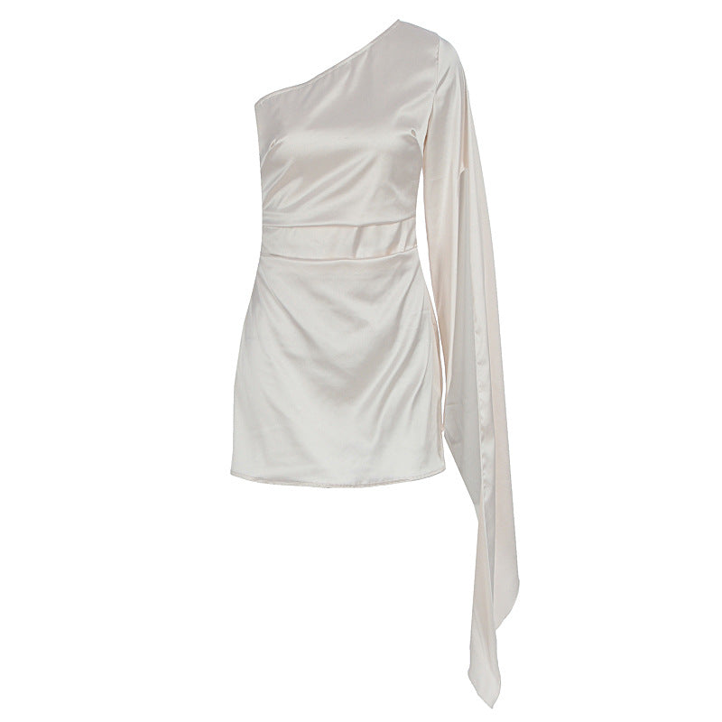 Women Clothing Summer Shoulder Collar Sexy Slim Fit Floating Sleeved Sheath Dress