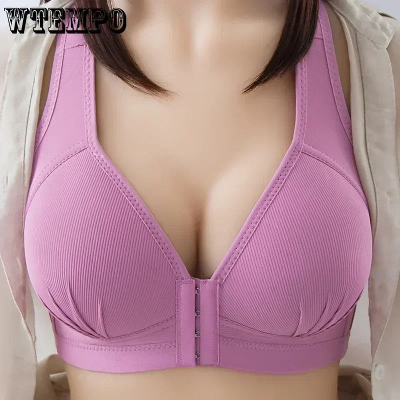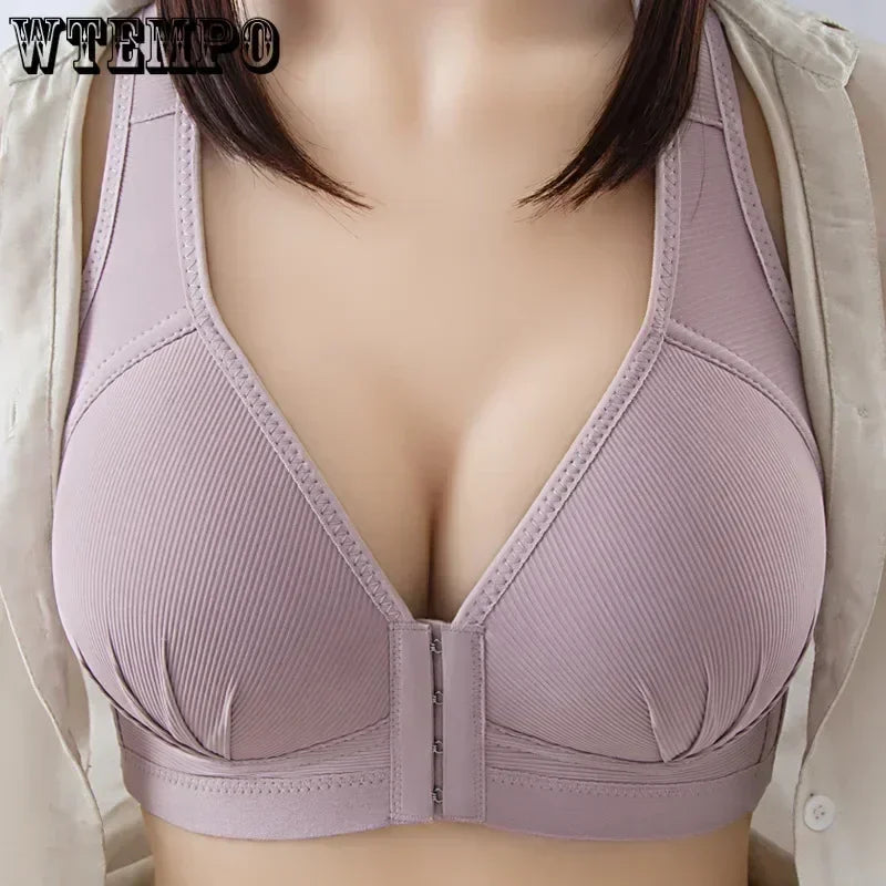 WTEMPO 大尺寸薄款無鋼圈前扣棉質文胸,聚攏舒適內衣,柔軟系列