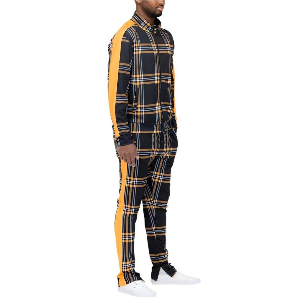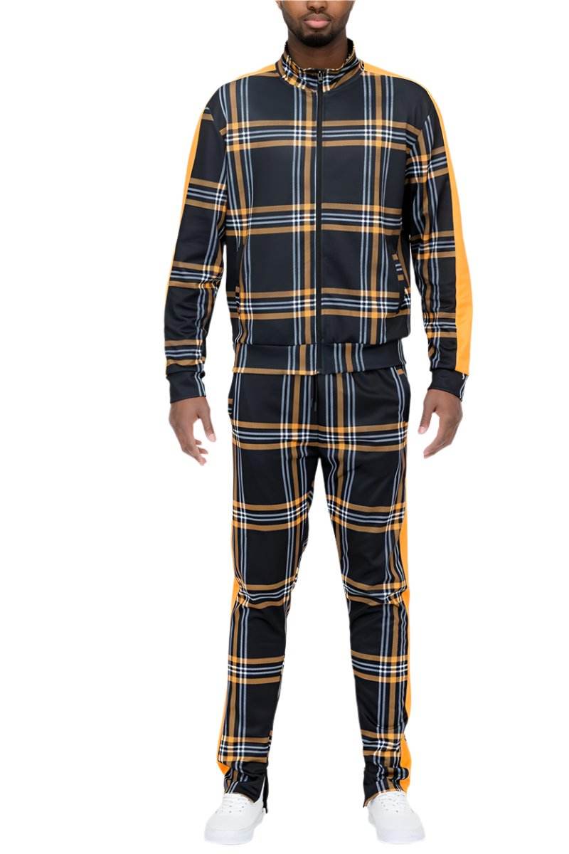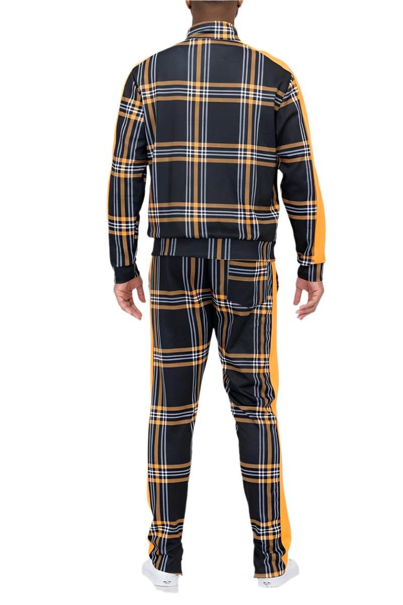 黃色格紋運動外套褲套裝